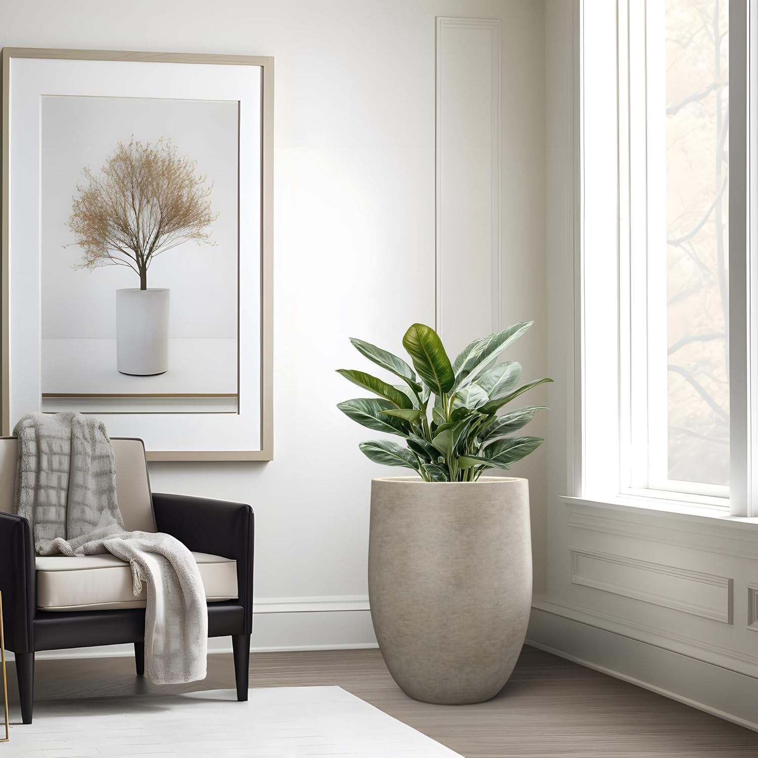 Kante Tall Concrete Planter, 21.7-Inch Height Weathered Concrete Large Indoor Outdoor Plant Pot with Drainage Hole for Patio Garden Home, Modern Decor for Flowers and Tree