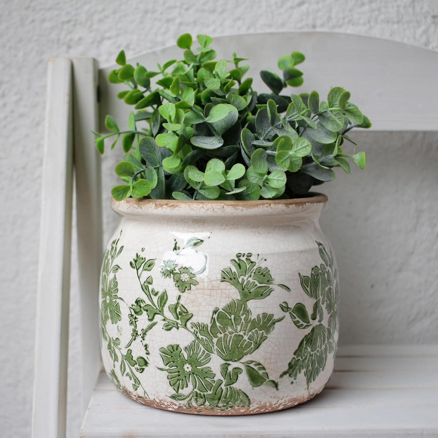 Plant Pots, Ceramic Planters for Indoor/Outdoor Plants, 6.29'' Flower Pots for Indoor Plants with Drainage, Vase & Planters, Vintage Indoor Plant Pots, Home & Fall Decor, Classic Green