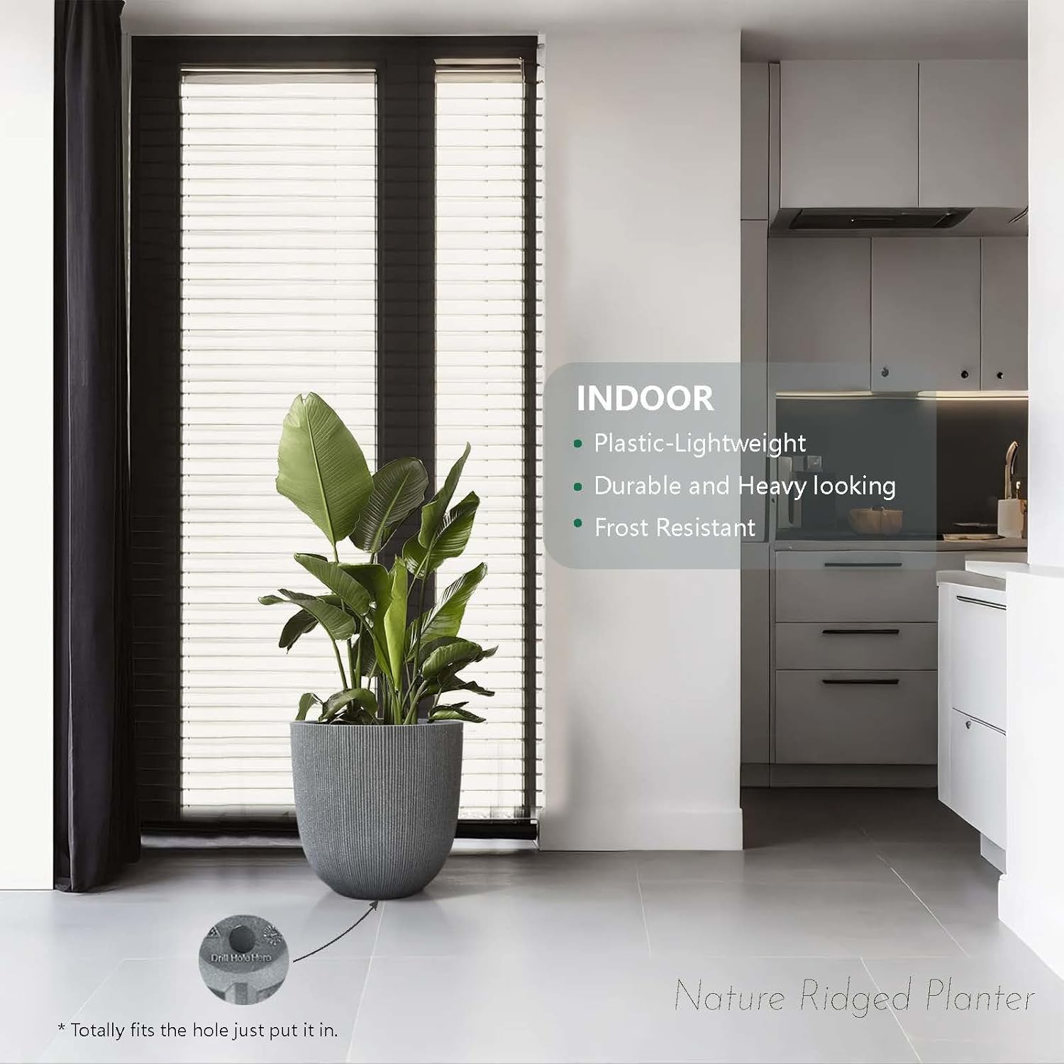 12.4" Tall Round Plastic Planter for Indoor Outdoor Plants, Large Indoor Outdoor Plant Pots with Drainage Hole and Plug, Flower Pots for Plants, Modern Decorative Planter Pots for Home Garden Patio