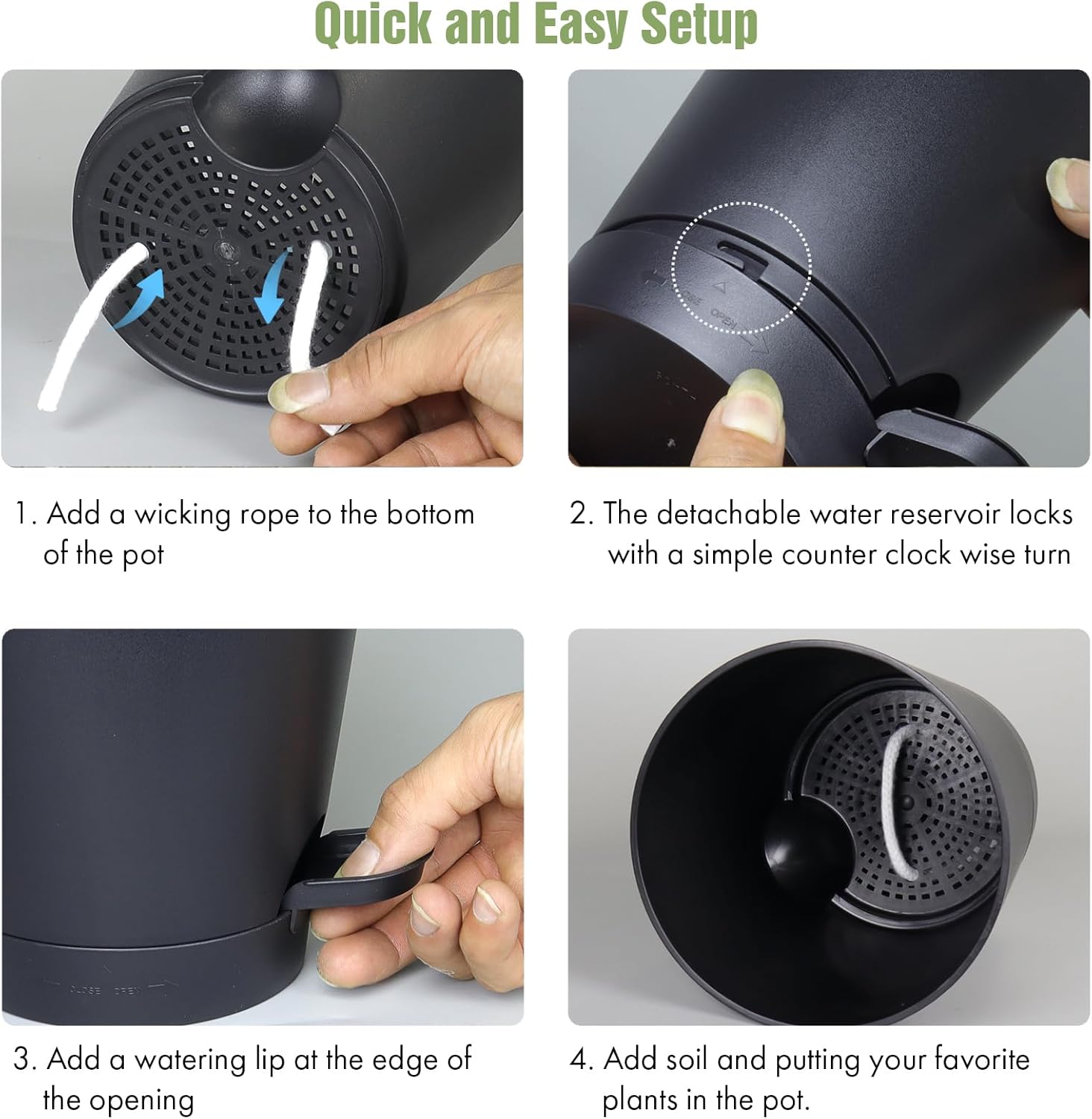 - 【Self-Watering Design】These 4 inch self watering pots for indoor plants are designed with a wick rope that draws water from the reservoir at the bottom. The set of 6 plastic self watering planter provides an optimal air circulation system for plant roots