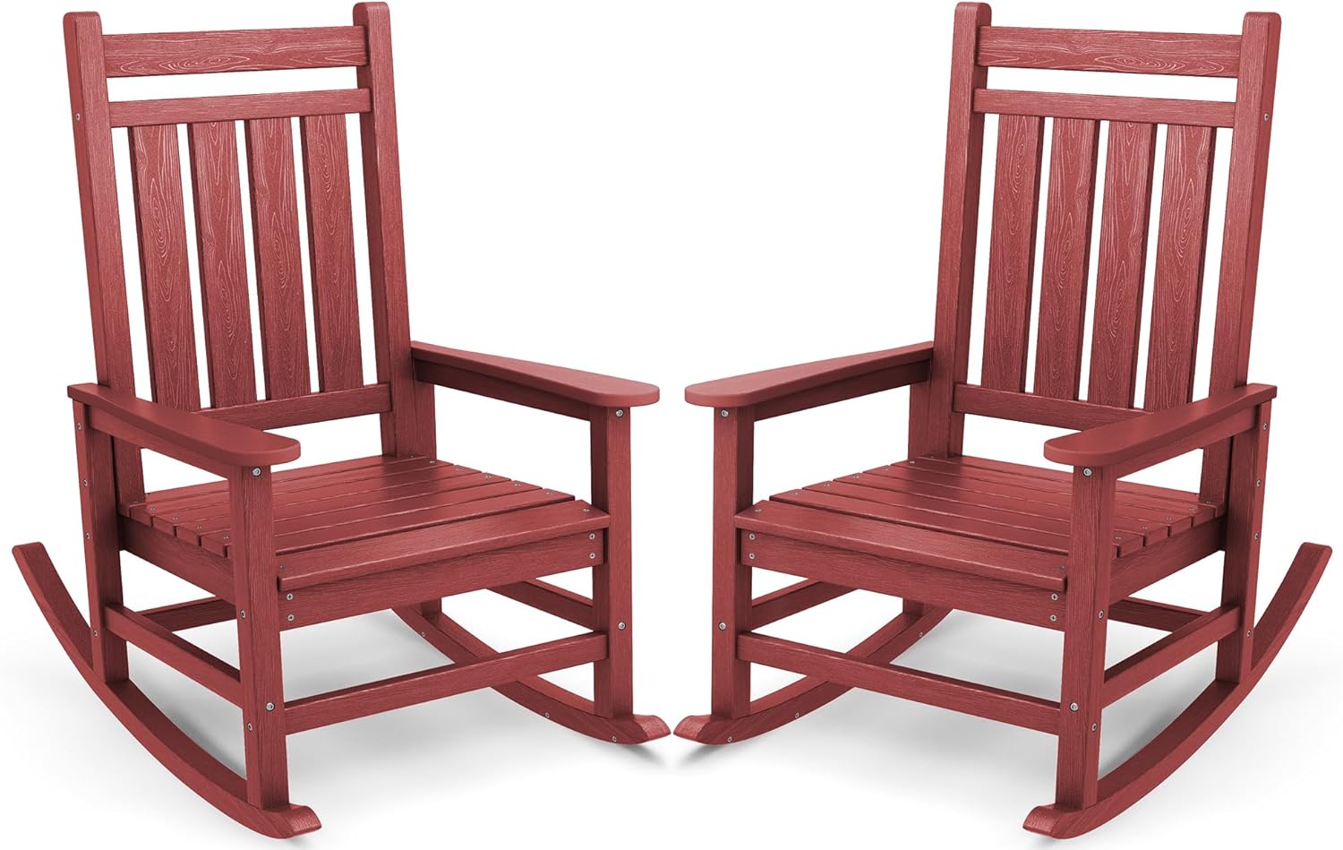 SERWALL Oversized Outdoor Rocking Chair Set of 2, HDPE Rocker for Adults, Patio Rocking Chairs for Porch, Crimson Red