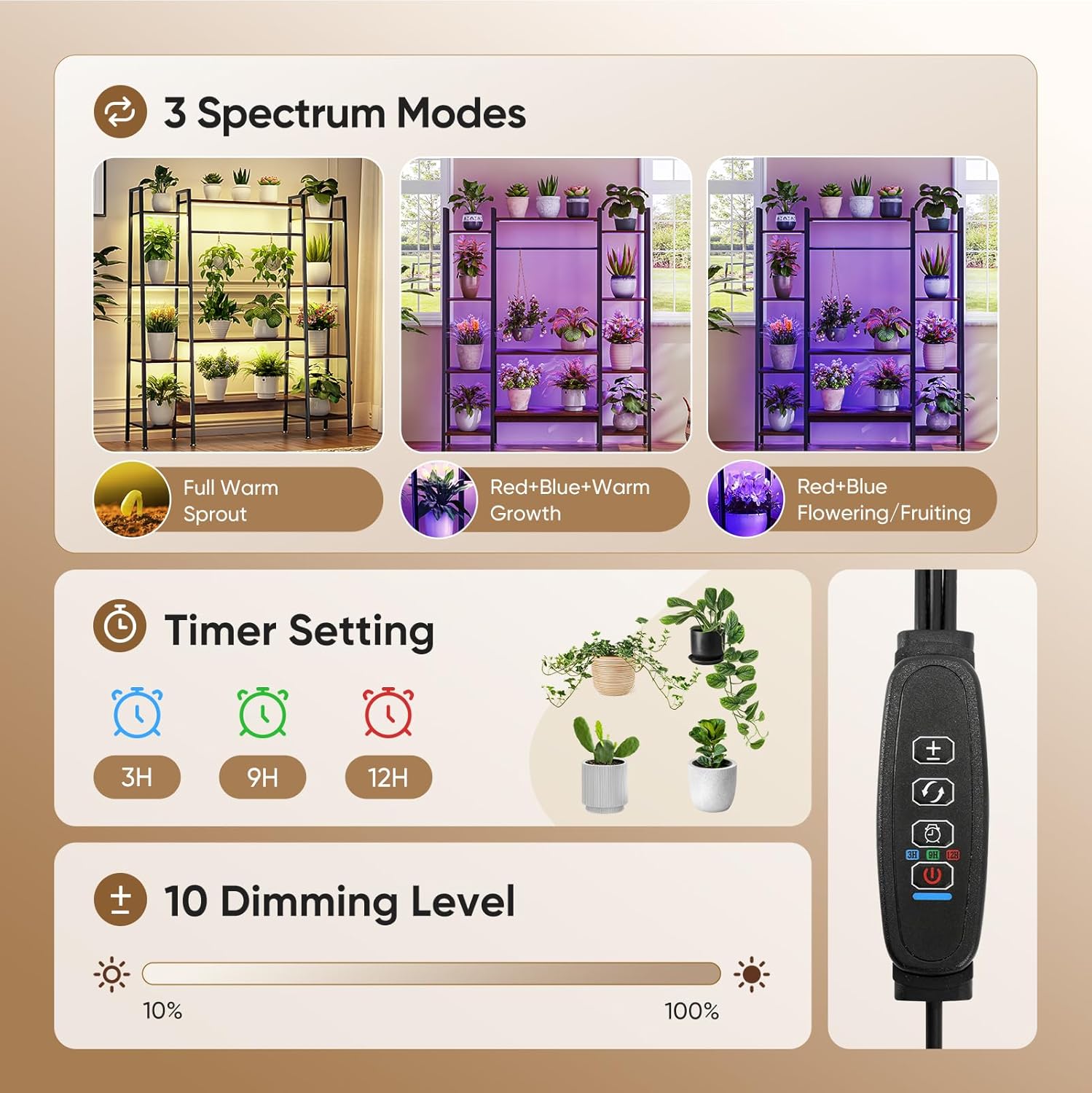 - 【Smart Auto Timer & 10-Level Dimming】Program daily cycles (3/9/12H) with one-touch memory function. Adjust from soft 10% glow for succulents to 100% intensity for hydroponics—each shelf’s 3 extra LED strips prevent shadow zones.