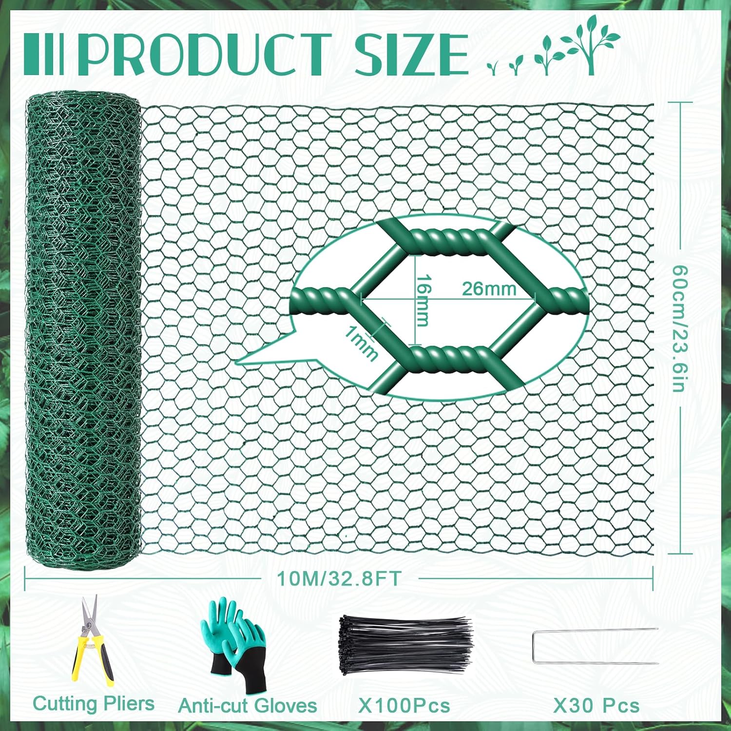 32.8ftx24In Plant Protectors from Animals,Plant Cages for Outdoor Plants,Wire Plant Protector Cage,Wire Plant Protector,Chicken Wire Cloche with Ground Stakes & Nylon Ties Protect Plants from Animals