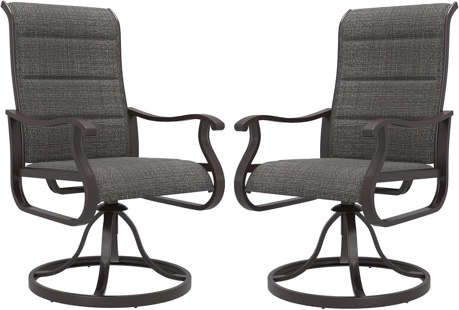 Amopatio Padded Patio Swivel Chairs Set of 2, Outdoor Dining Chairs with Ultra Soft Textilene High Back Seat & Metal Rocker Frame, for Backyard Deck Lawn (Dark Grey)