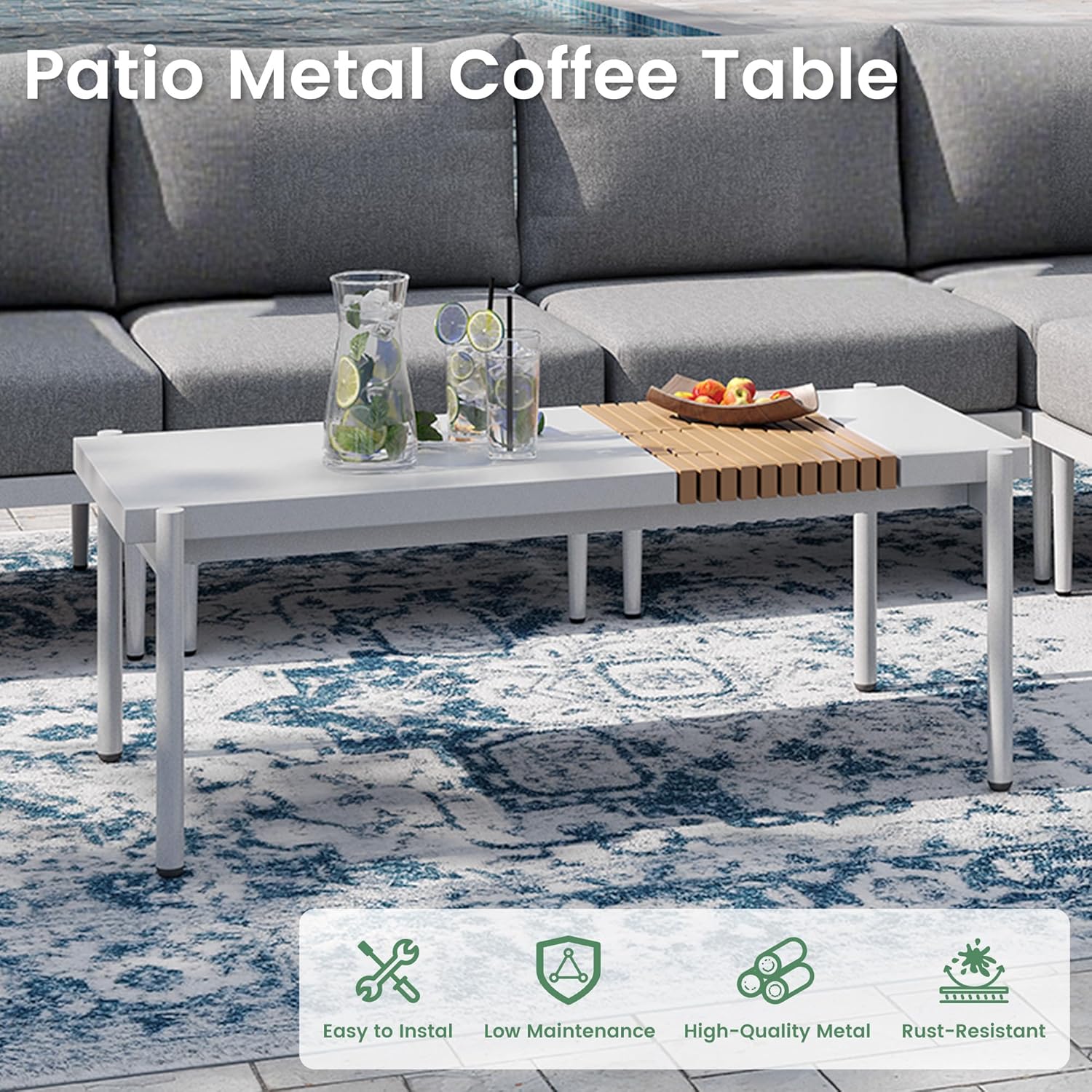 - Durable Metal Frame for All-Weather Use: – Crafted from high-quality metal, this outdoor coffee table resists rust, corrosion, and UV damage. Perfect for year-round patio, backyard, and deck use