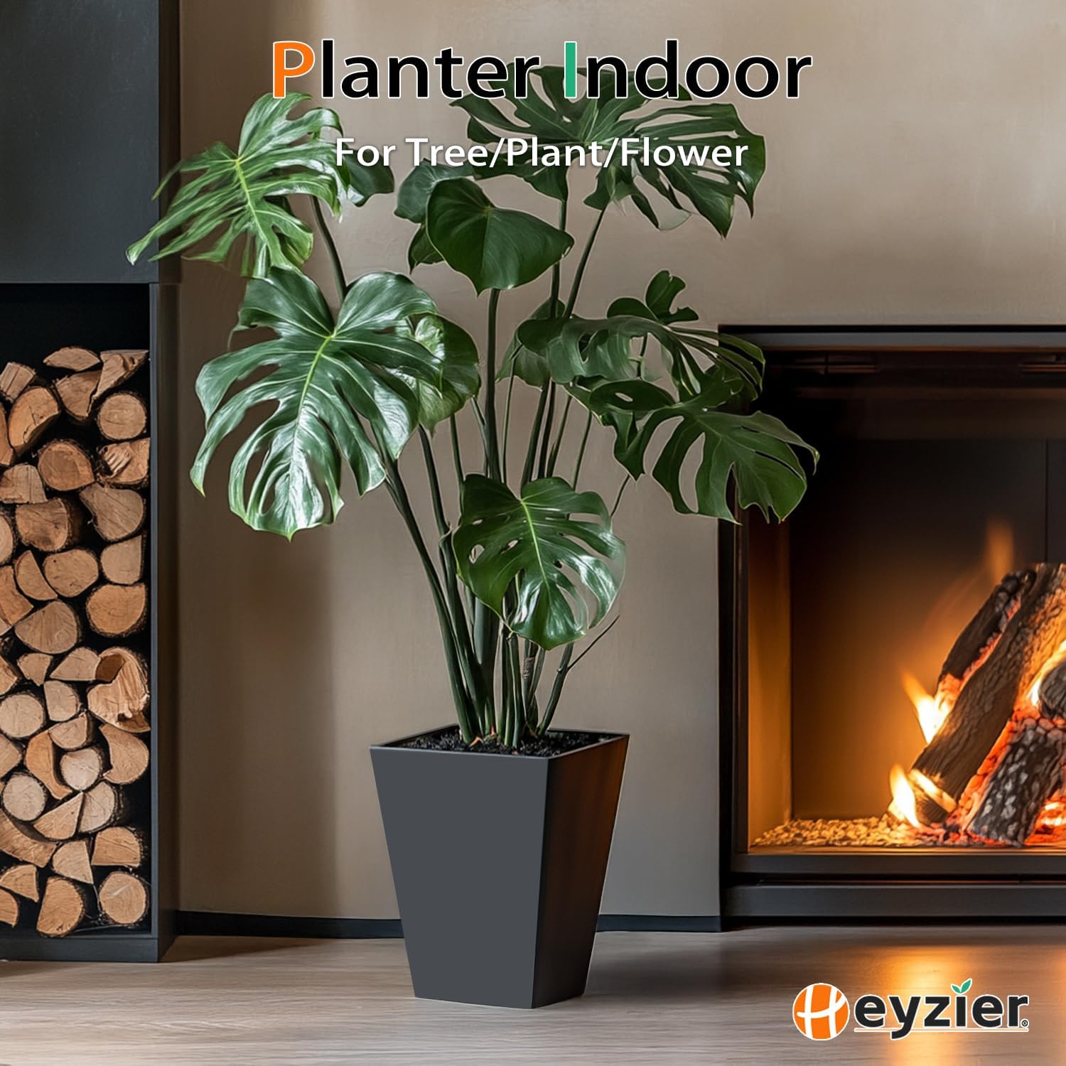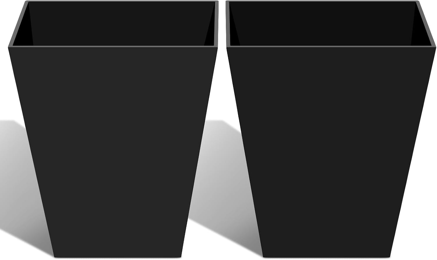 Resin Planter Outdoor Indoor, Taper Plant Pots for Flowers (Black, 12.2 inch - 2 Pack)