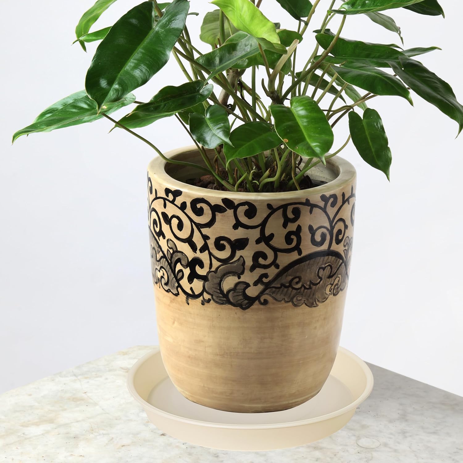 - THICKENED & DURABLE - The small plant saucer are made from duty PP plastic.The plastic is sturdy, strong, durable will last for several years, Plastic plant saucer 14 inch are designed with matte finishing exterior in soft, round shapes, bringing out a modern minimalistic styled, plant saucers for indoors.