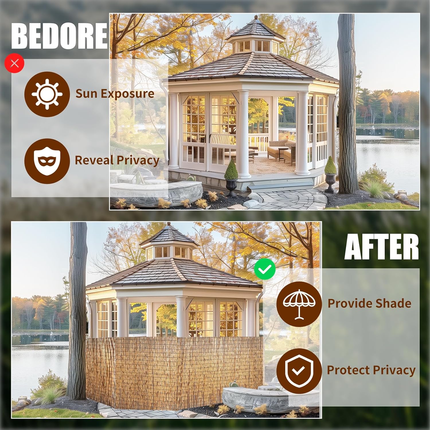 - More Shade and Privacy:This reed screen is made of natural reeds, tightly woven together to block sunlight and block the view of neighbors. In addition, the reed screen allows weak light to pass through, providing necessary light for reading or daily activities