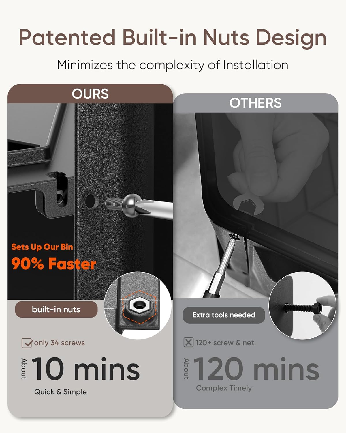 - Save 80% Time: Unlike traditional tumbling compost bins, our upgraded rotating compost bin features a built-in internal nut system, making setup faster and simpler. No need to hold nuts from the outside—just screw and go! This innovation cuts assembly time in less than 10 mins, making it the ideal compost machine for first-timers or busy gardeners. A must-have for anyone searching for a compost bin outdoor large, compost bin for garden, or garden compost bin that's quick to assemble.