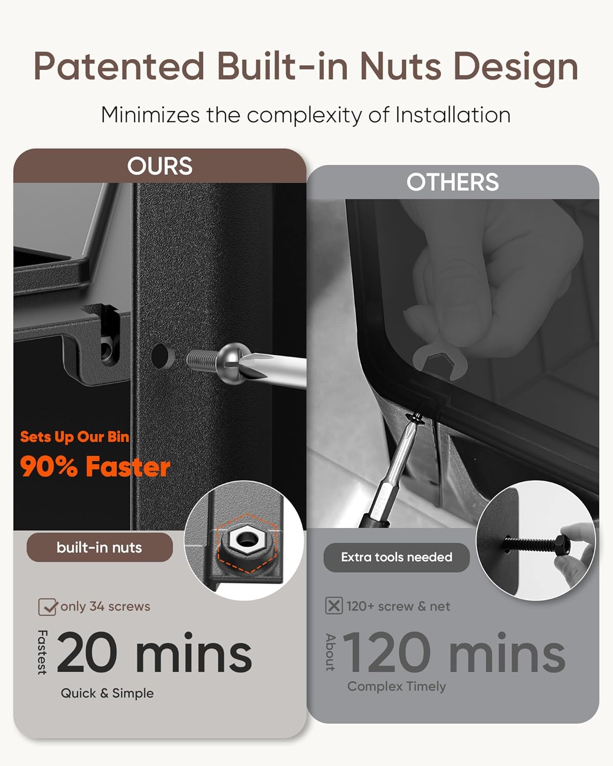 - Save 80% Time: Unlike traditional tumbling compost bins, our upgraded rotating compost bin features a built-in internal nut system, making setup faster and simpler. No need to hold nuts from the outside—just screw and go! This innovation cuts assembly time in less than 10 mins, making it the ideal compost machine for first-timers or busy gardeners. A must-have for anyone searching for a compost bin outdoor large, compost bin for garden, or garden compost bin that's quick to assemble.