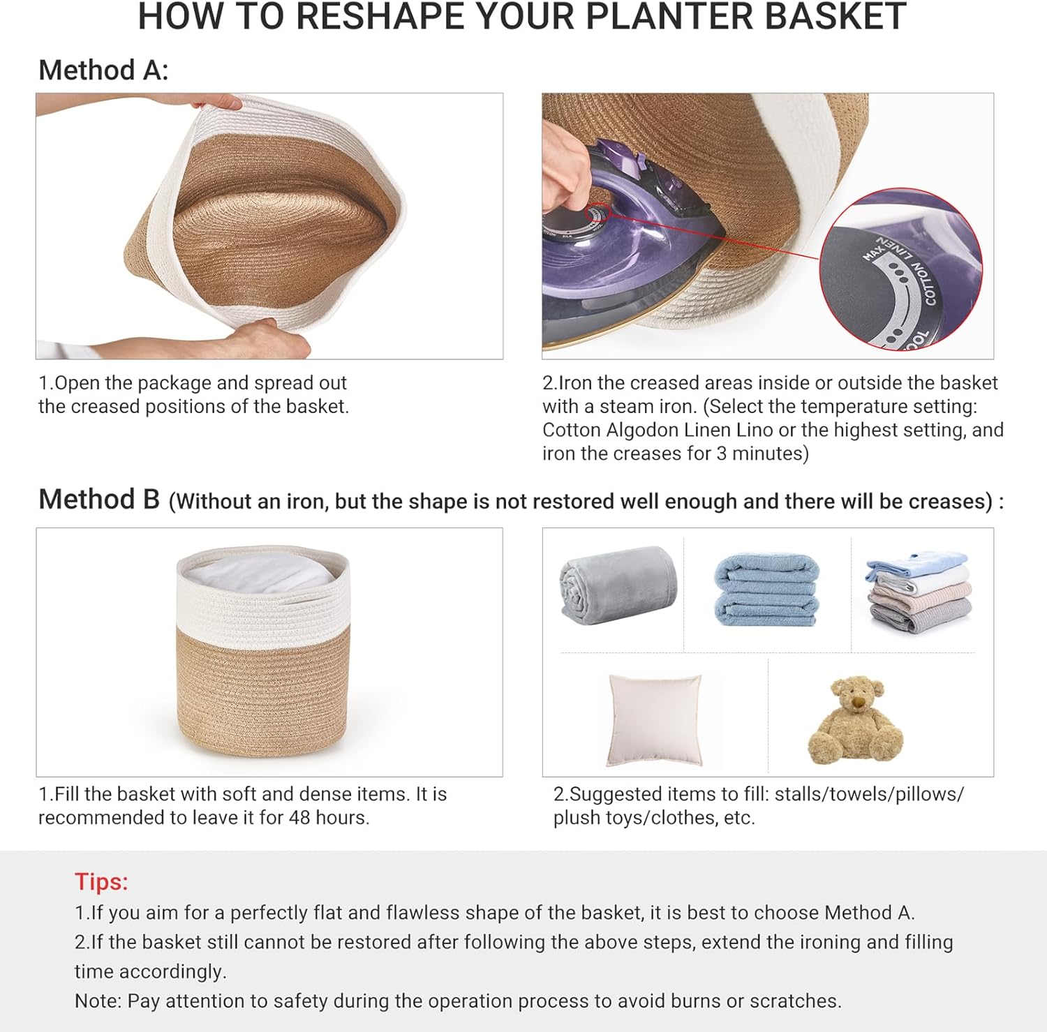 - Multiuse for Different Scenes: Not only use as a potted house planter cover for decoration, but also use it as a storage bin for laundry items, clothes, blanket, baby toys, beddings, magazines, home supplies and more. Widely used it in livingroom, bedroom, restroom, or laundry room