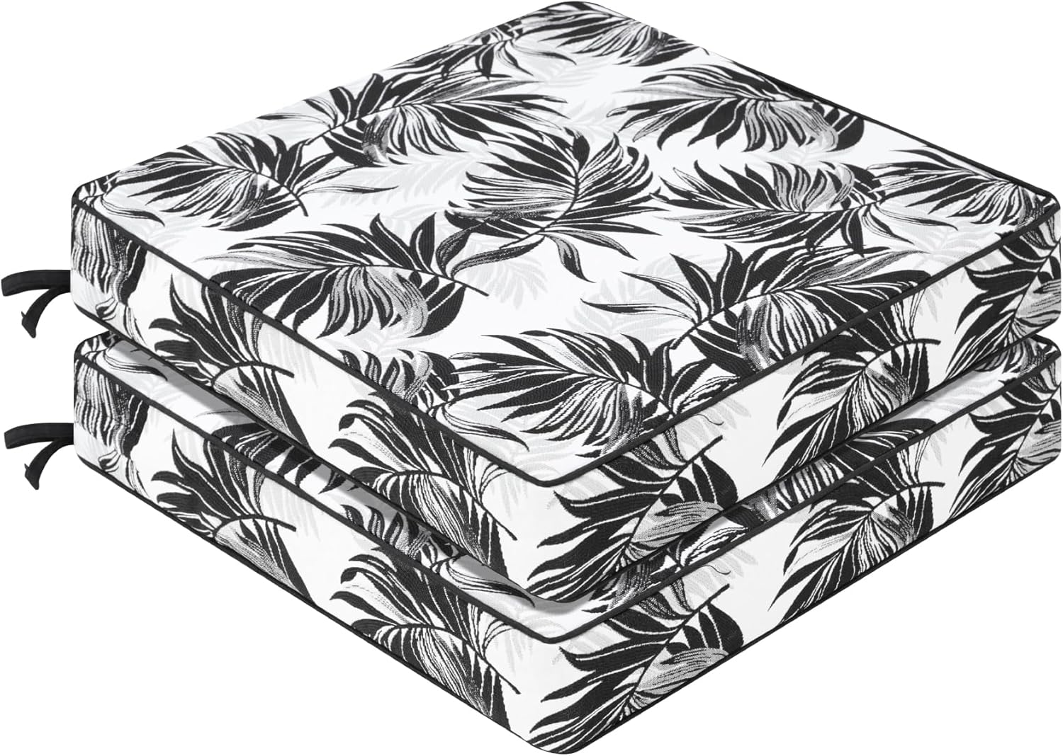 Favoyard Outdoor Chair Cushion 22 x 22 x 3 In Waterproof Pattern Fade Resistant Cushions for Patio Furniture with Removable Cover Attach Straps 28D Foam Insert Cushions Pads for Seat Sofa Couch 2 Pack