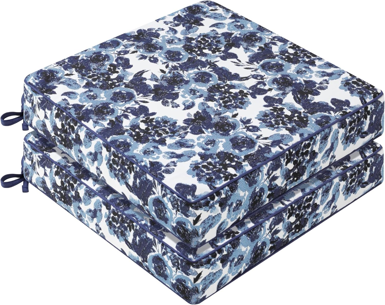 Favoyard Outdoor Chair Cushion 24 x 24 x 4 In Waterproof Pattern Fade Resistant Cushions for Patio Furniture with Removable Cover Attach Straps 28D Foam Insert Cushions Pads for Seat Sofa Couch 2 Pack
