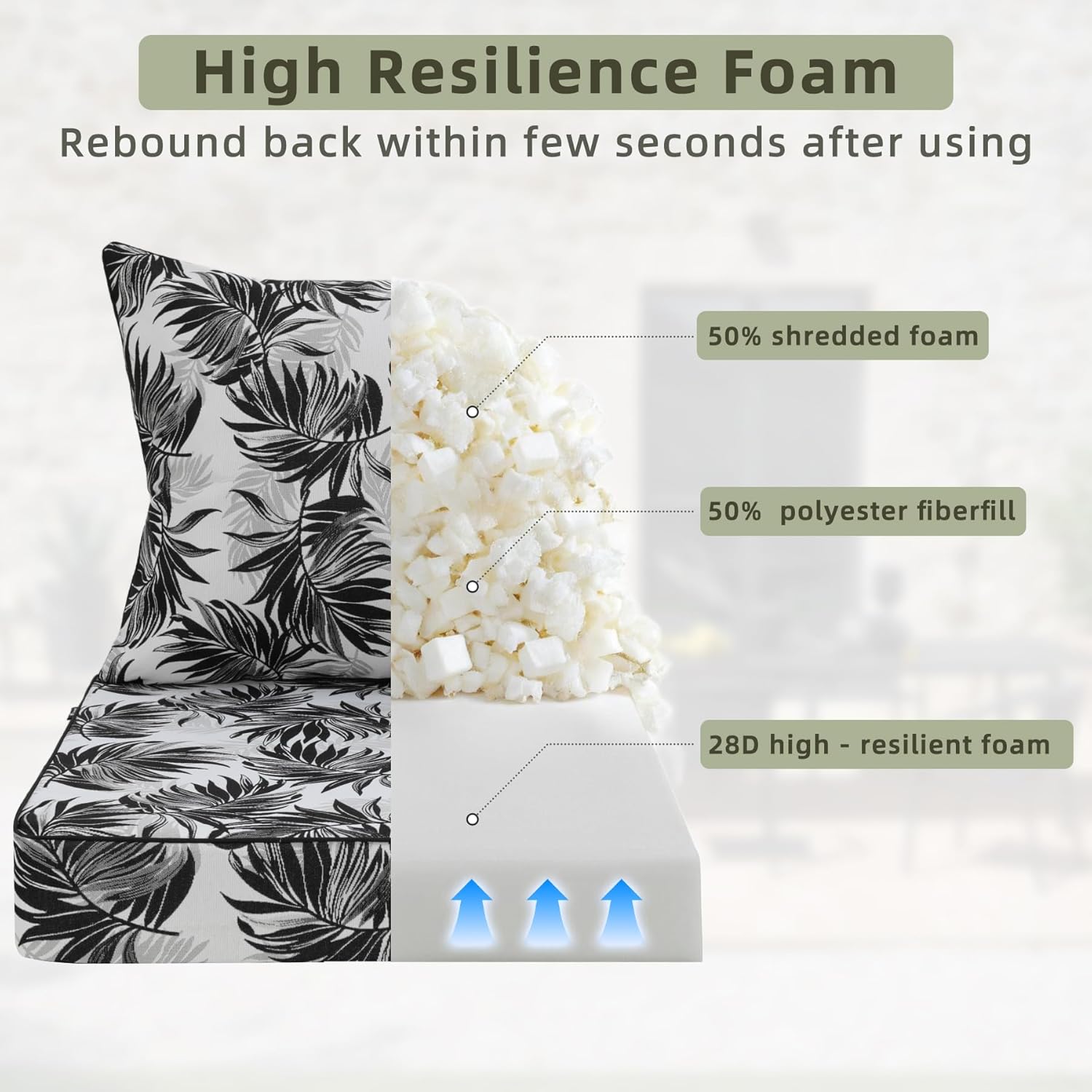 - Comfortable and Durable Foam Insert: Seat cushion is made from a single piece of 28D foam, which keeps the cushion supportive and resistant to deformation even after sitting for long periods of time. The back cushion is made of 50% shredded foam and 50% polyester fiberfill for softness and comfort. Both help you enjoy your patio.