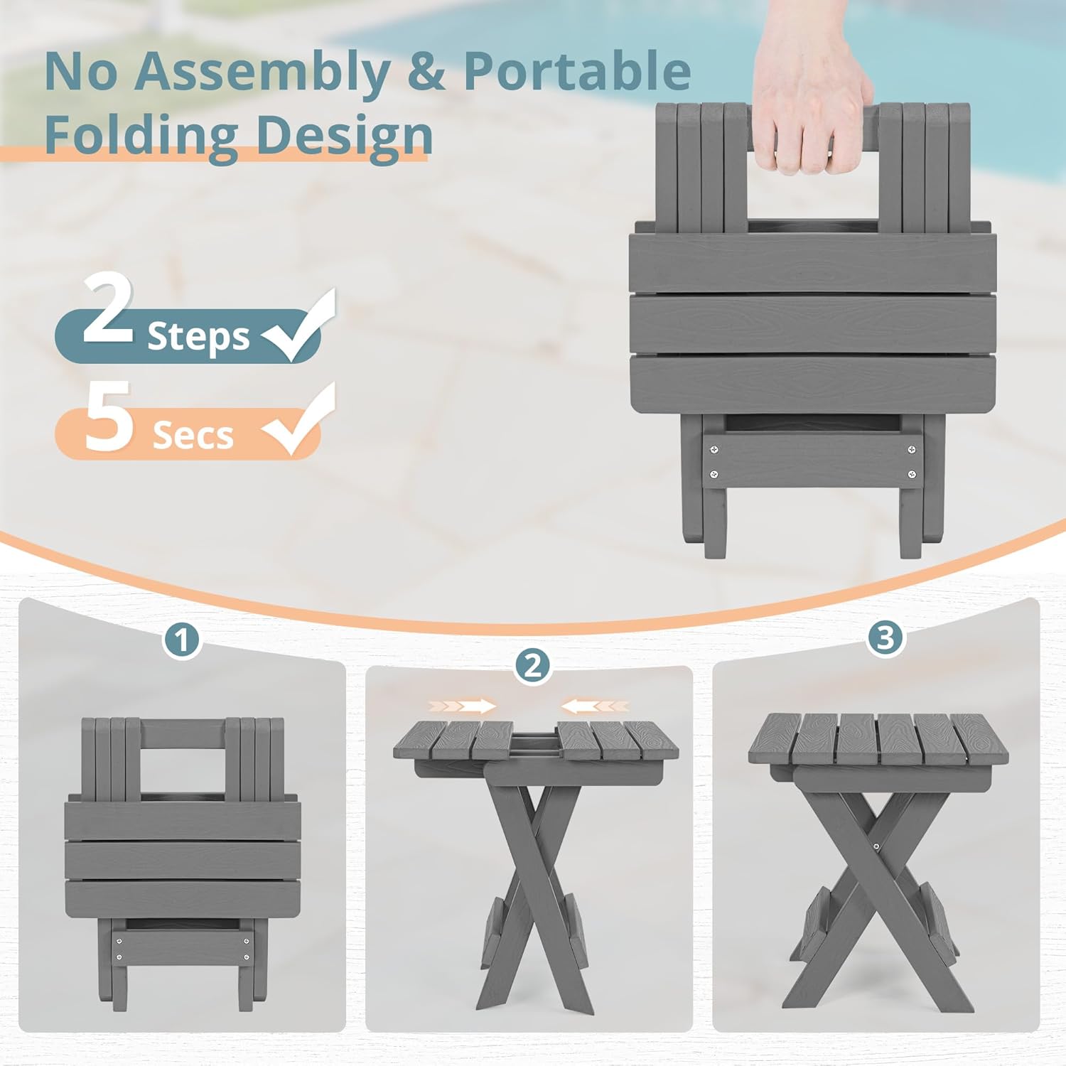 - ๐๐ผ๐น๐ฑ๐ฎ๐ฏ๐น๐ฒ ๐ข๐๐๐ฑ๐ผ๐ผ๐ฟ ๐ฆ๐ถ๐ฑ๐ฒ ๐ง๐ฎ๐ฏ๐น๐ฒ: The LUE BONA adirondack side table cleverly folds down to a smaller size, offering outdoor lovers an ideal way to maximize space when not in use