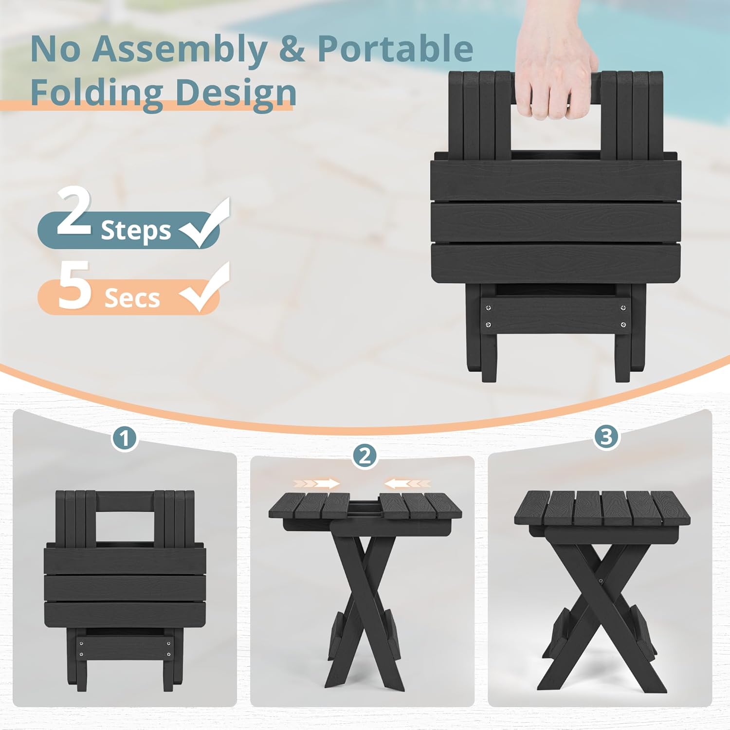 - ๐๐ผ๐น๐ฑ๐ฎ๐ฏ๐น๐ฒ ๐ฆ๐ถ๐ฑ๐ฒ ๐ง๐ฎ๐ฏ๐น๐ฒ/๐ฆ๐ต๐ผ๐๐ฒ๐ฟ ๐ฏ๐ฒ๐ป๐ฐ๐ต: The LUE BONA 2 in 1 adirondack side table/shower bench cleverly folds down to a smaller size, offering outdoor lovers an ideal way to maximize space when not in use