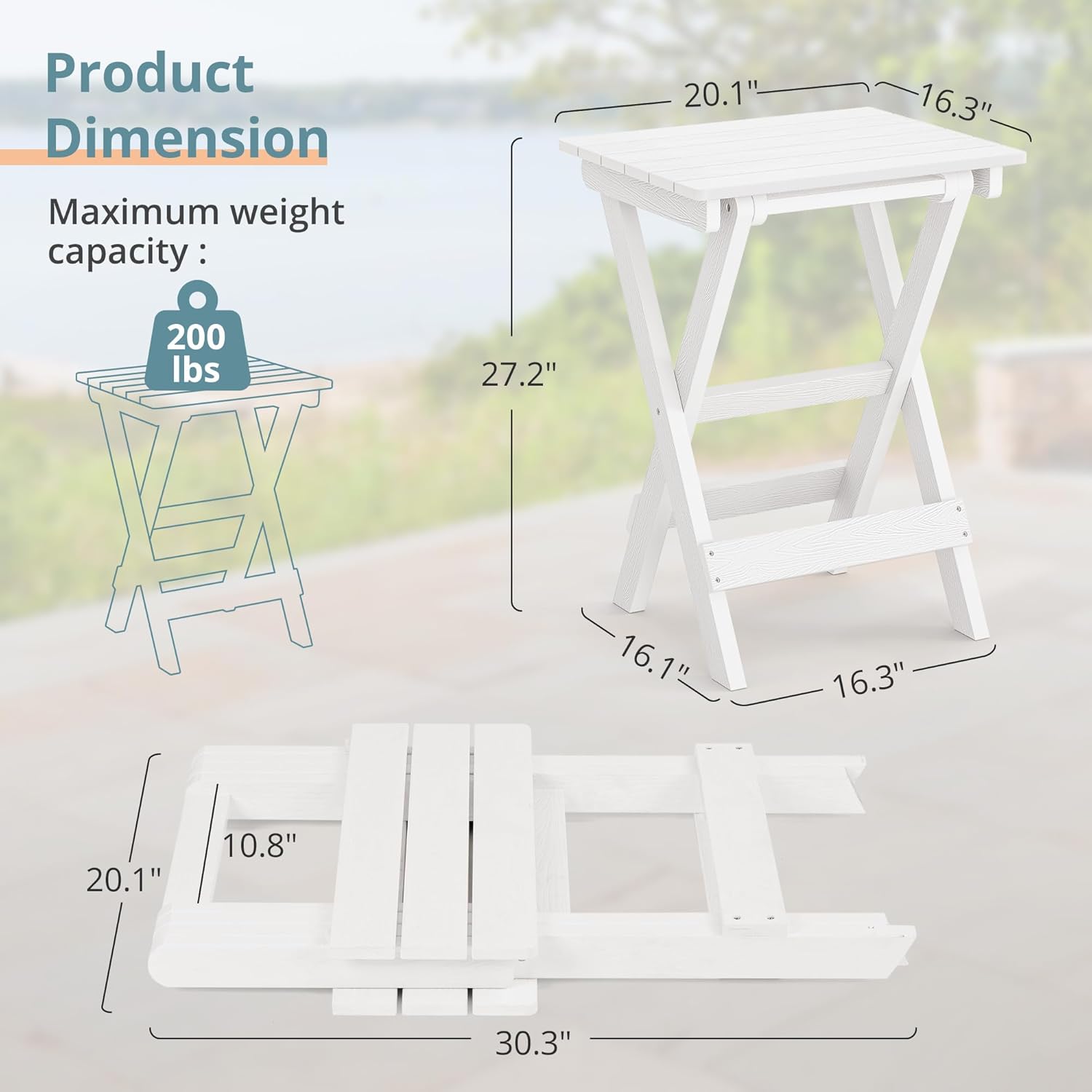 - ๐๐ฎ๐๐ ๐๐ผ ๐ง๐ฟ๐ฎ๐ป๐๐ฝ๐ผ๐ฟ๐ & ๐ฆ๐๐ผ๐ฟ๐ฒ: Lightweight yet sturdy, only 15.4lbs(7kg), this side table goes wherever you do, from backyard BBQs to lakeside camping trips and beach outings(folded size: 30.3"L x 20.1"W x 10.8"H)