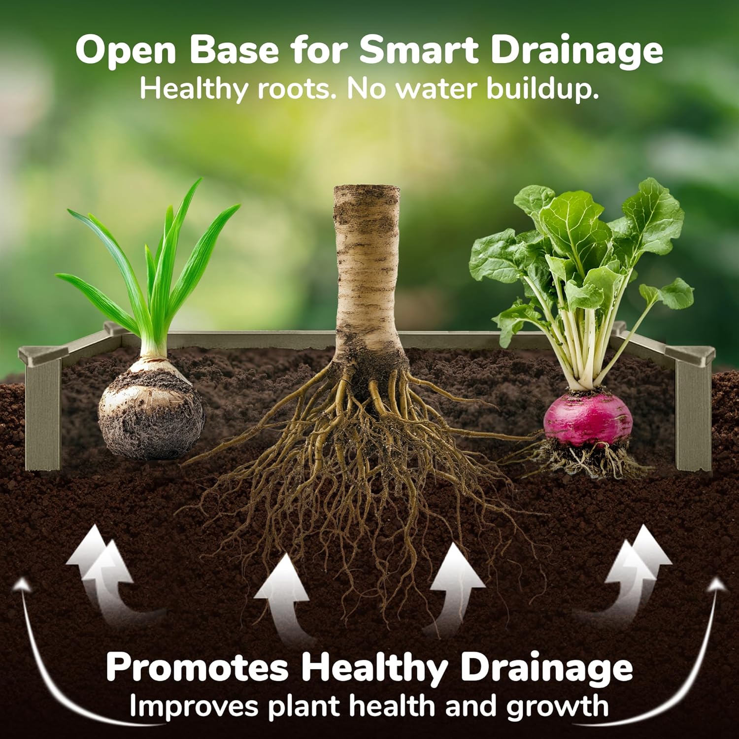 - SAFE, ECO-FRIENDLY GARDENING: Made from non-toxic, BPA-free plastic, this raised bed is 100% recyclable, offering a sustainable option for growing your herbs, vegetables, and flowers. Enjoy peace of mind knowing your garden is safe for both plants and the planet.
