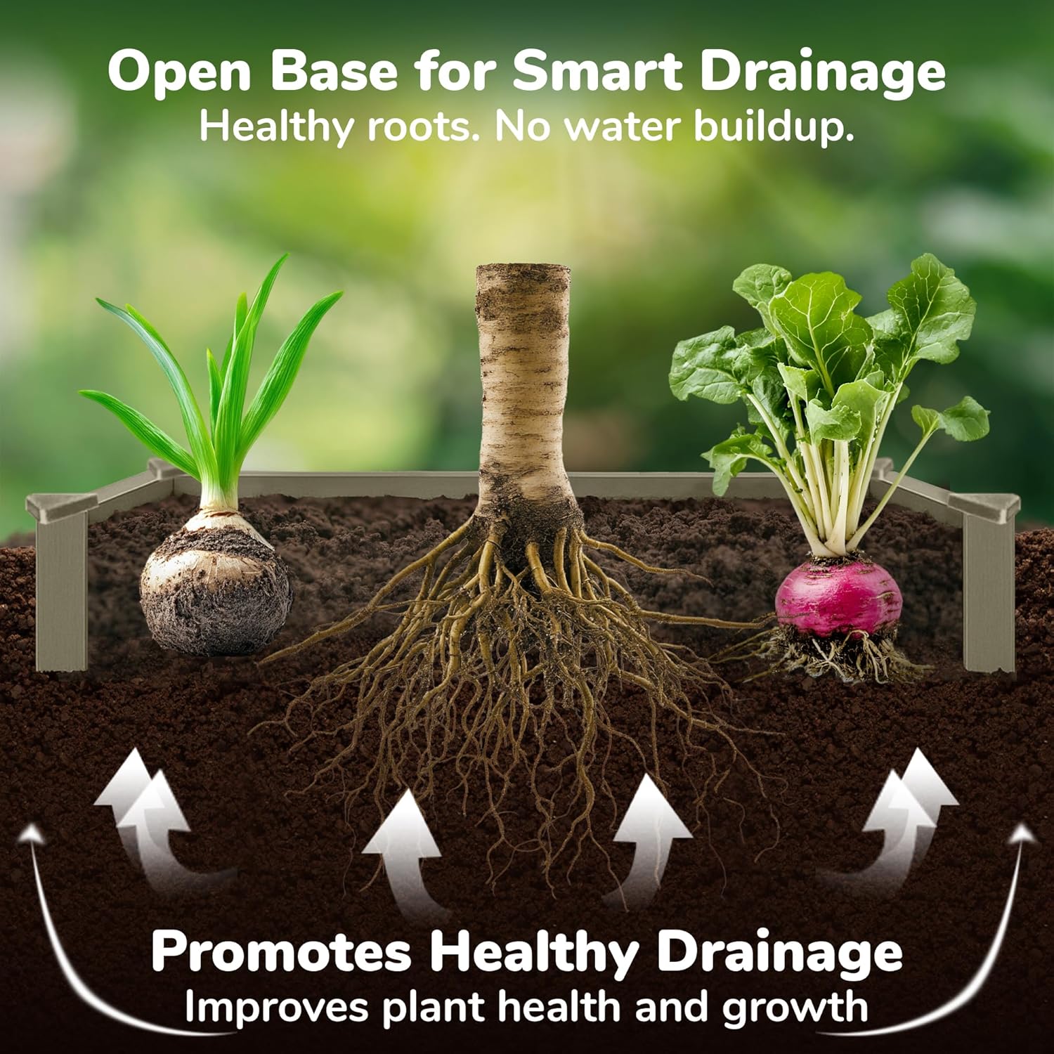 - SAFE, ECO-FRIENDLY GARDENING: Made from non-toxic, BPA-free plastic, this raised bed is 100% recyclable, offering a sustainable option for growing your herbs, vegetables, and flowers. Enjoy peace of mind knowing your garden is safe for both plants and the planet.