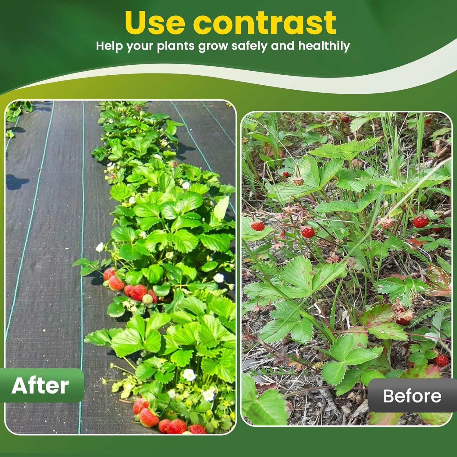 - High-Quality Garden Weed Barrier Fabric: Our garden weed barrier fabric is made of high-density, 3.5OZ woven professional-grade polypropylene, durable and not easy to tear. This weed control fabric is breathable and UV-resistant, ensuring long-lasting performance even in hot, dry climates. Garden fabric weed barrier allows air & water flow while blocking weeds, keeping soil moist and promotes plant growth, making your gardening life easier and more efficient