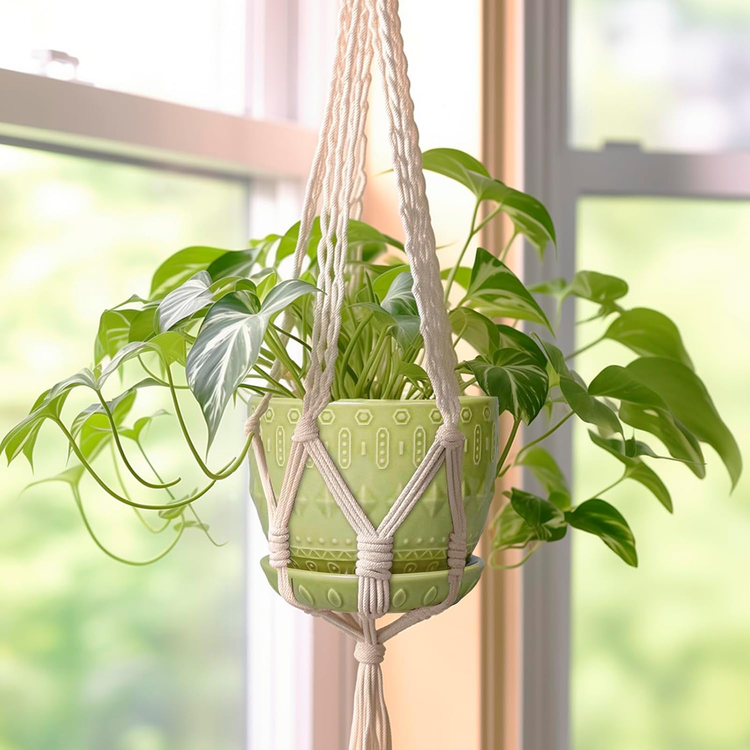 - Draining Hole and Saucer: This indoor plant pot comes with a plastic mesh and ceramic tray, which help drain excess water, retain soil, and keep your table tidy