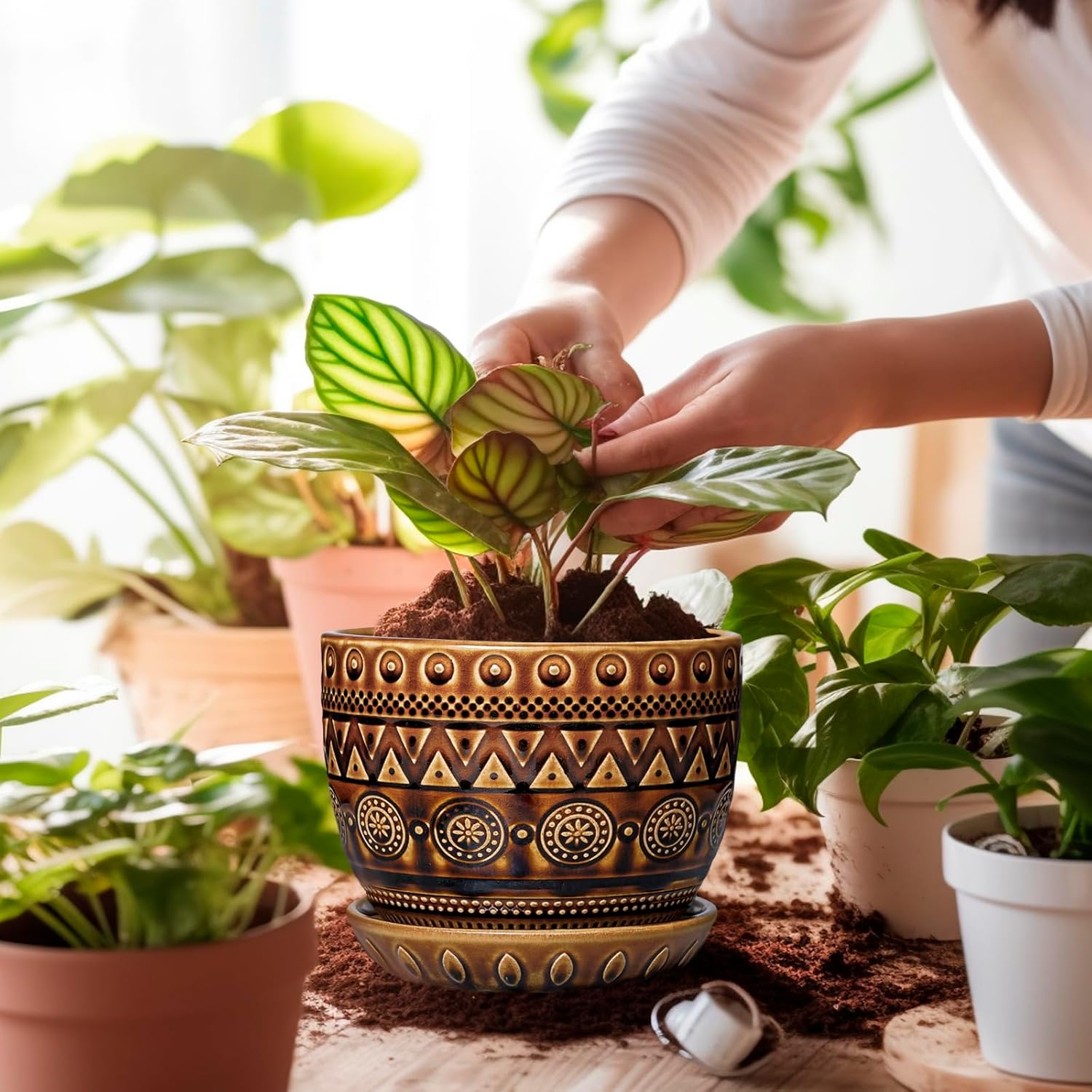 - Ideal Size of Indoor Plant Pot: Each ceramic planter is 5.5 D x 4.7 H, which can provide enough space for your plants to thrive. One package includes brown planter, ceramic tray and mesh