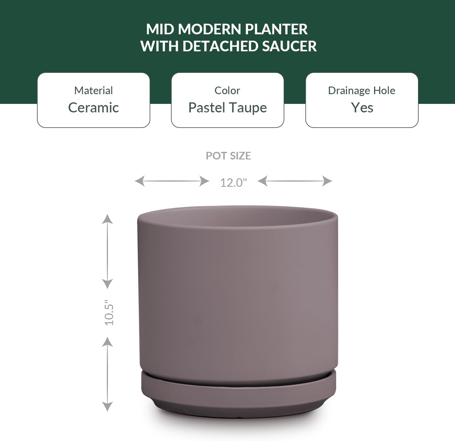 Mid Modern Planter with Detached Saucer (Pastel Taupe,12.0" D x 10.5" H)