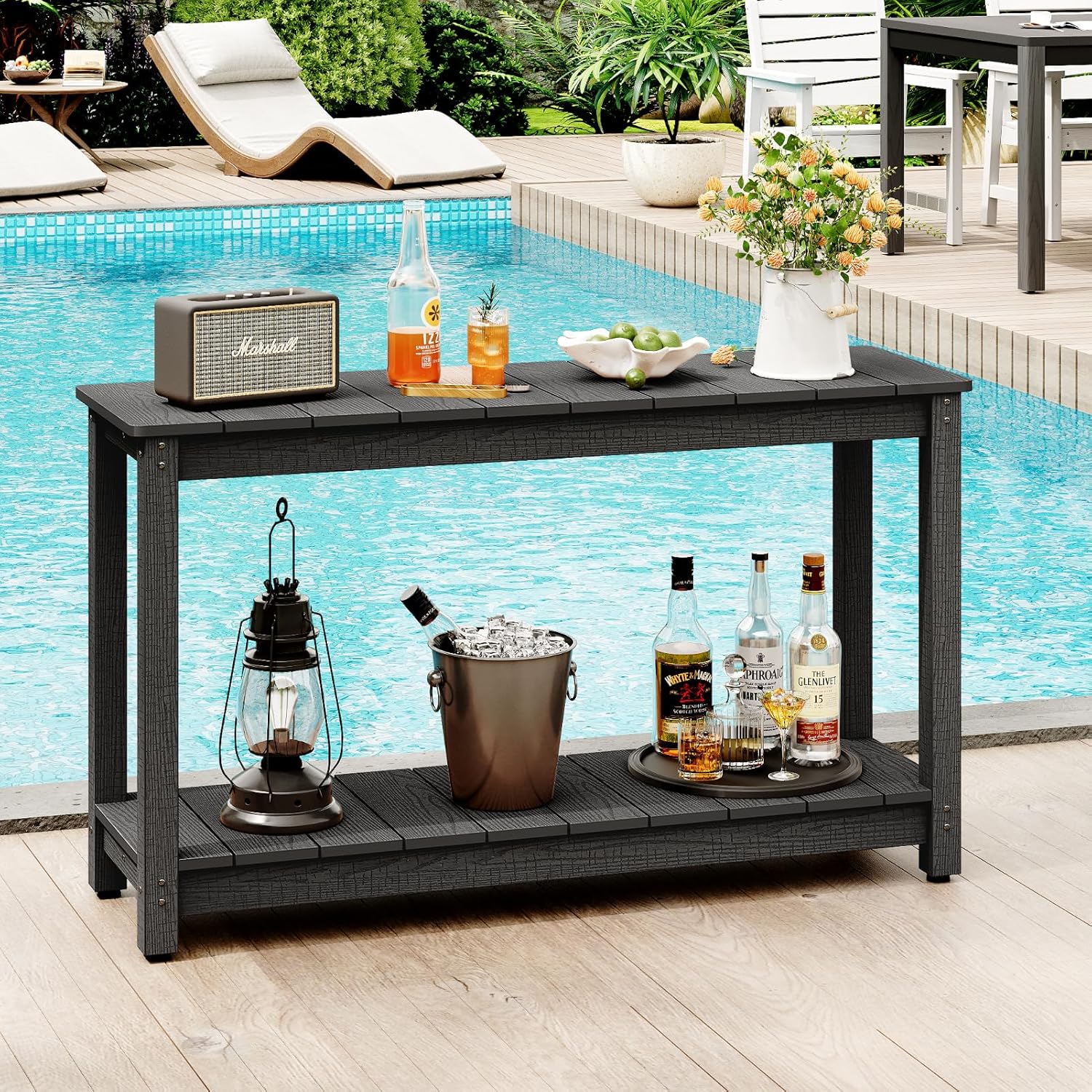 Outdoor Console Table, 48" Weather Resistant HIPS Patio Side Table, 440LBS Weight Capacity, 2-Tier Multifunctional Buffet Bar Storage Organizer for Garden Deck, Black