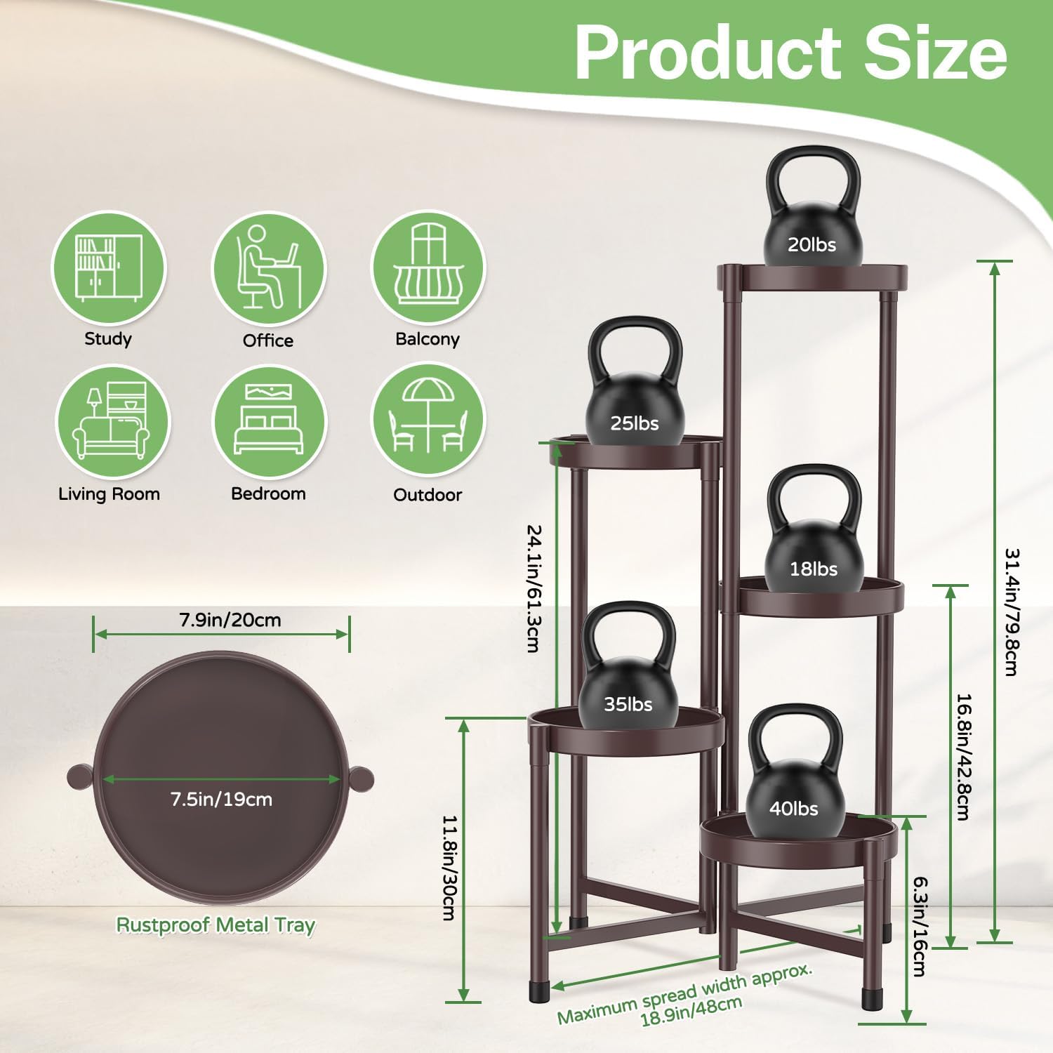 - 7.9-Inch Wide Trays with Rim: This tall plant stand features 7.9-inch round trays, suitable for pots up to 7.5 inches wide. Each tray is designed with raised edges that guard against spills and tipping, keeping your plants safe and steady