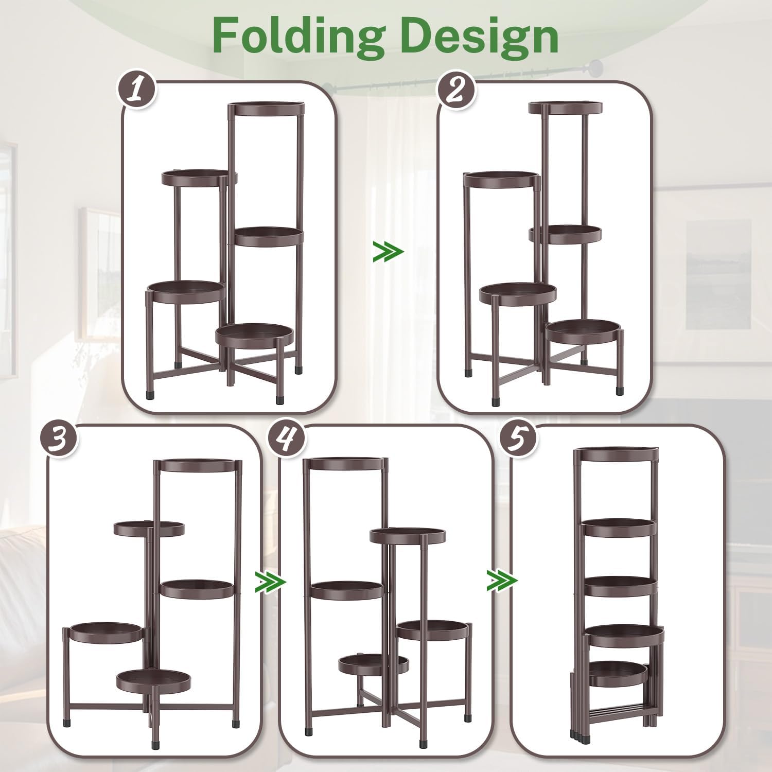 iDavosic.ly Plant Stand Indoor Outdoor, 5 Tier Corner Metal Flower Display Holder Shelf, Folding Tall Orchid Rack for Patio Balcony Porch Garden Living Room House, Violet Bronze
