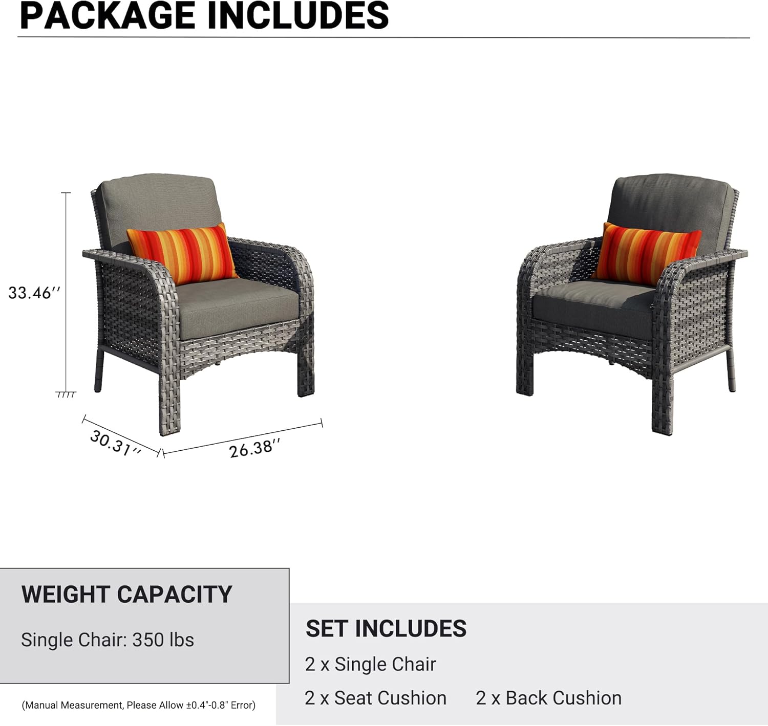 HOOOWOOO Patio Furniture Set,2 Pieces Outdoor Wicker Chairs Set,All Weather Bistro Chairs with Comfy High Back,Black