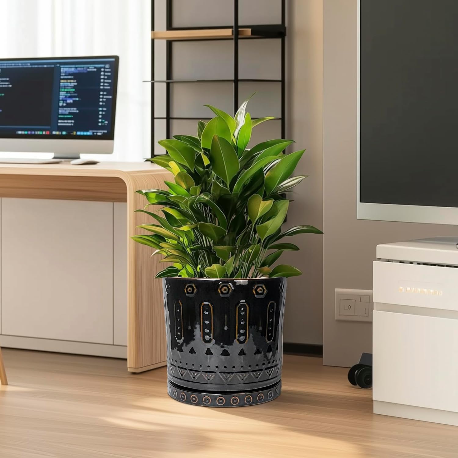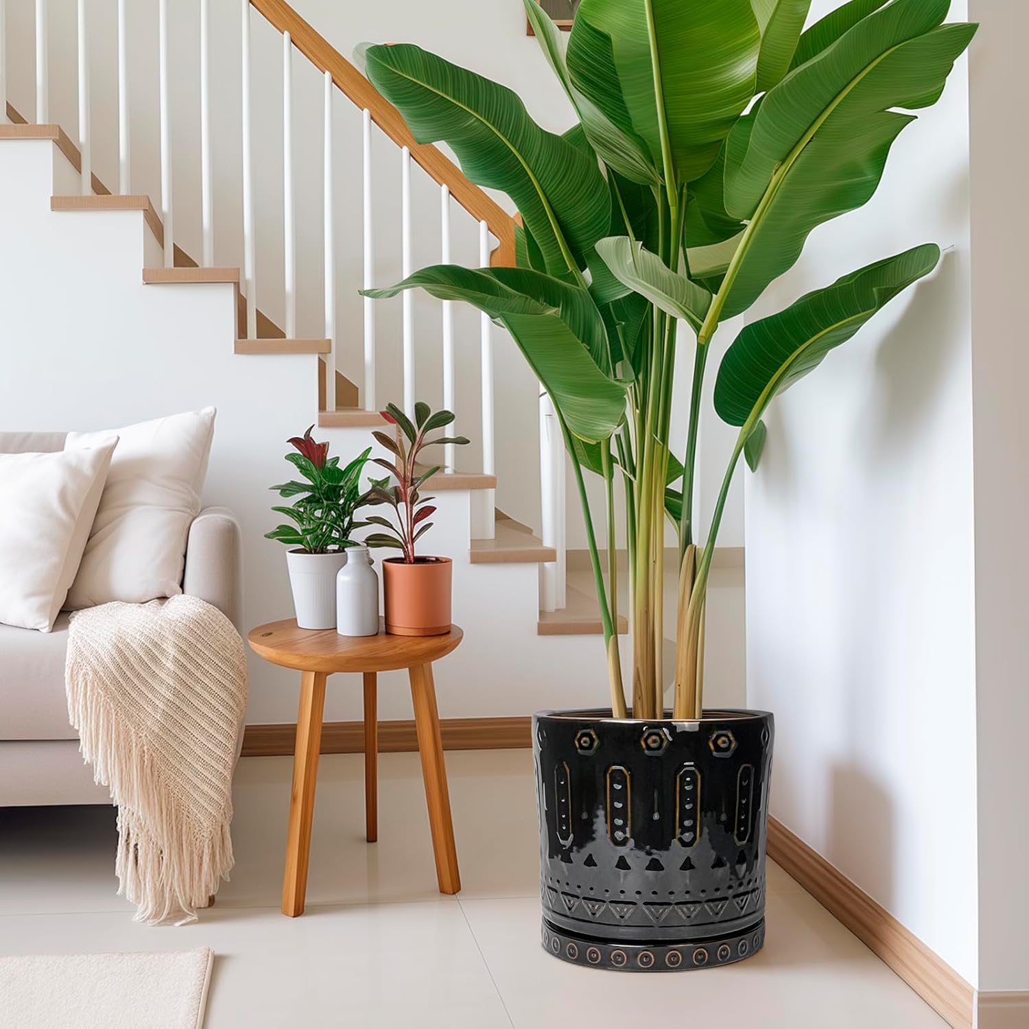 - Planter for a Variety of Plants: Ceramic plant pots is ideal for a wide range of plants. It is suitable for olive tree, snake plant, money tree, monstera, zz plant, bonsai tree, palm, sunflower, rose, ficus, eucalyptus plant, fiddle leaf fig, peace lily, bird of paradise, lavender plants, dracaena plant, geranium plant, agave plants, and more