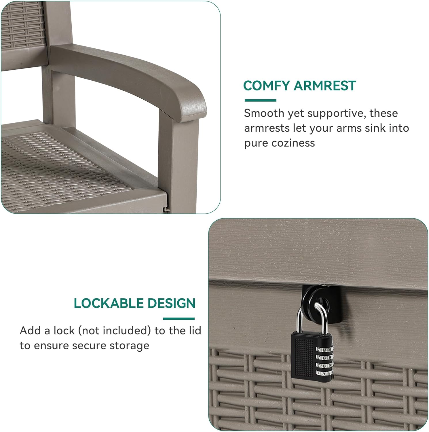 - Quick Assembly: Assemble this storage bench outside in just 30 minutes; Its stylish rattan finish effortlessly blends into any decor, adding a touch of sophistication to your deck or porch with minimal effort
