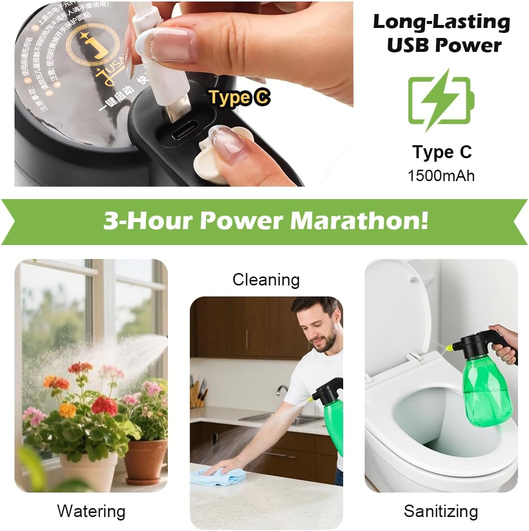 - Effortless Automated Spraying! No manual pumping needed: our electric design delivers continuous spray for extended watering or cleaning tasks.