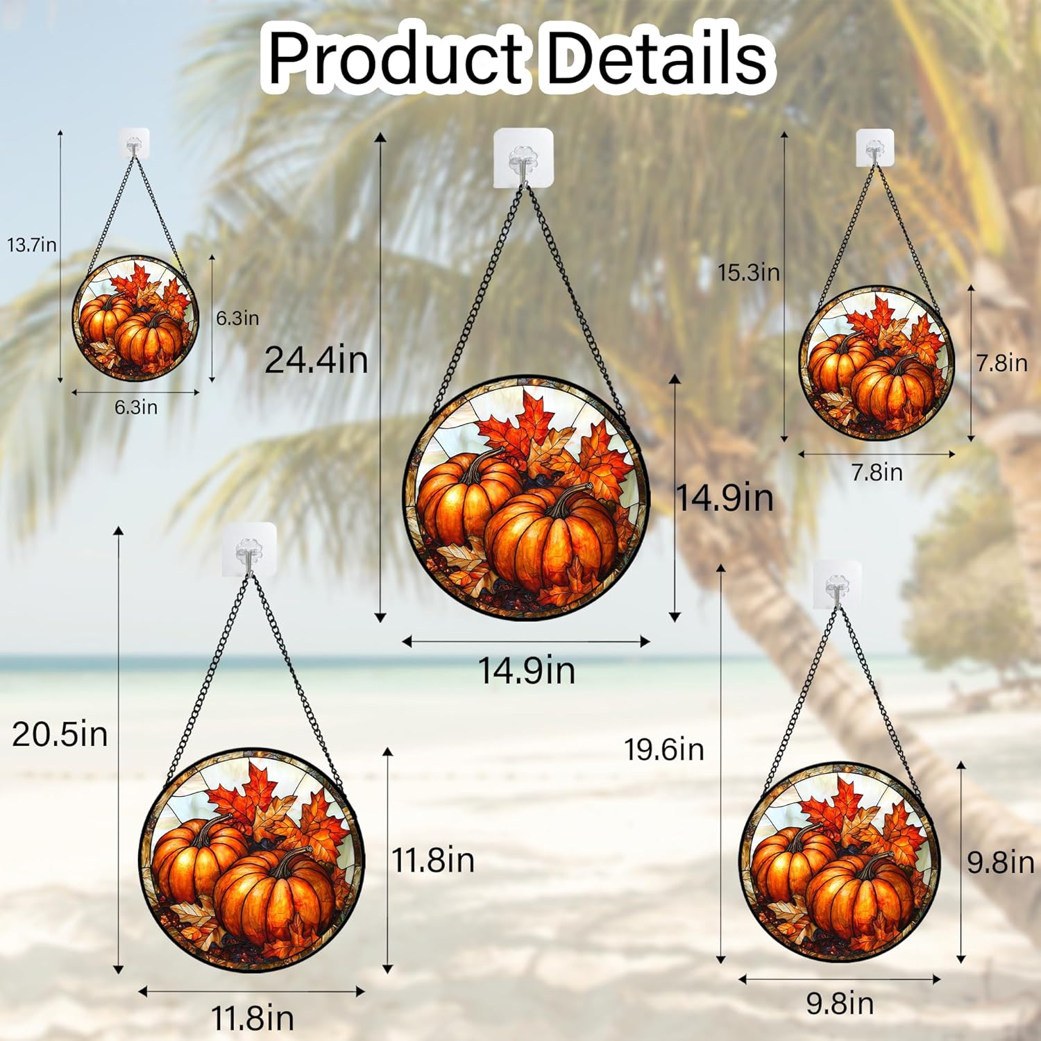 Stained Glass Window Hanging, Pumpkin Maple Leaf Suncatcher for Doors Home Sun Catchers Decoration and Christmas, Mother's Day Birthday Gifts for Women, Men, and Mom 15x15 in