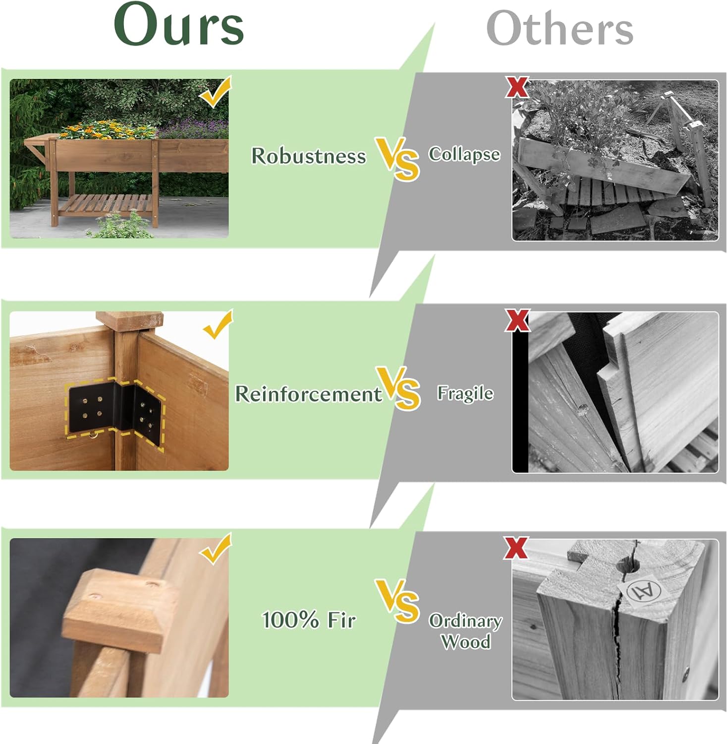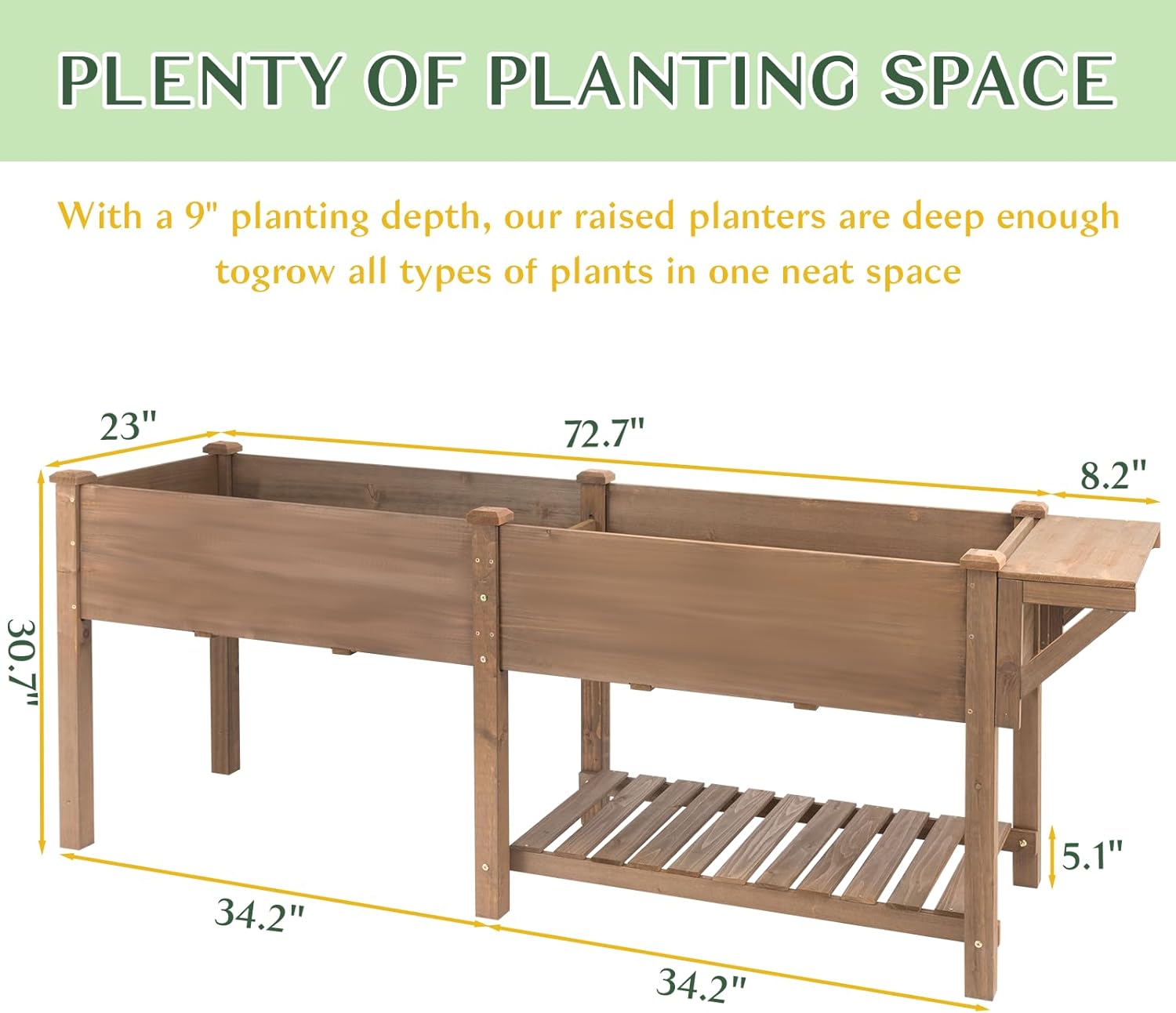 - Sturdy Raised Garden Bed Built To Last-Crafted from solid fir wood, this outdoor garden bed combines rugged durability with a natural wood finish—perfect for veggies, herbs, or flowers on patios, balconies, or backyards! Reinforced with W-shaped metal brackets at critical joints, it resists warping, cracking, and weather damage for years of worry-free use.Its overall dimensions-81"x 23" x 31".