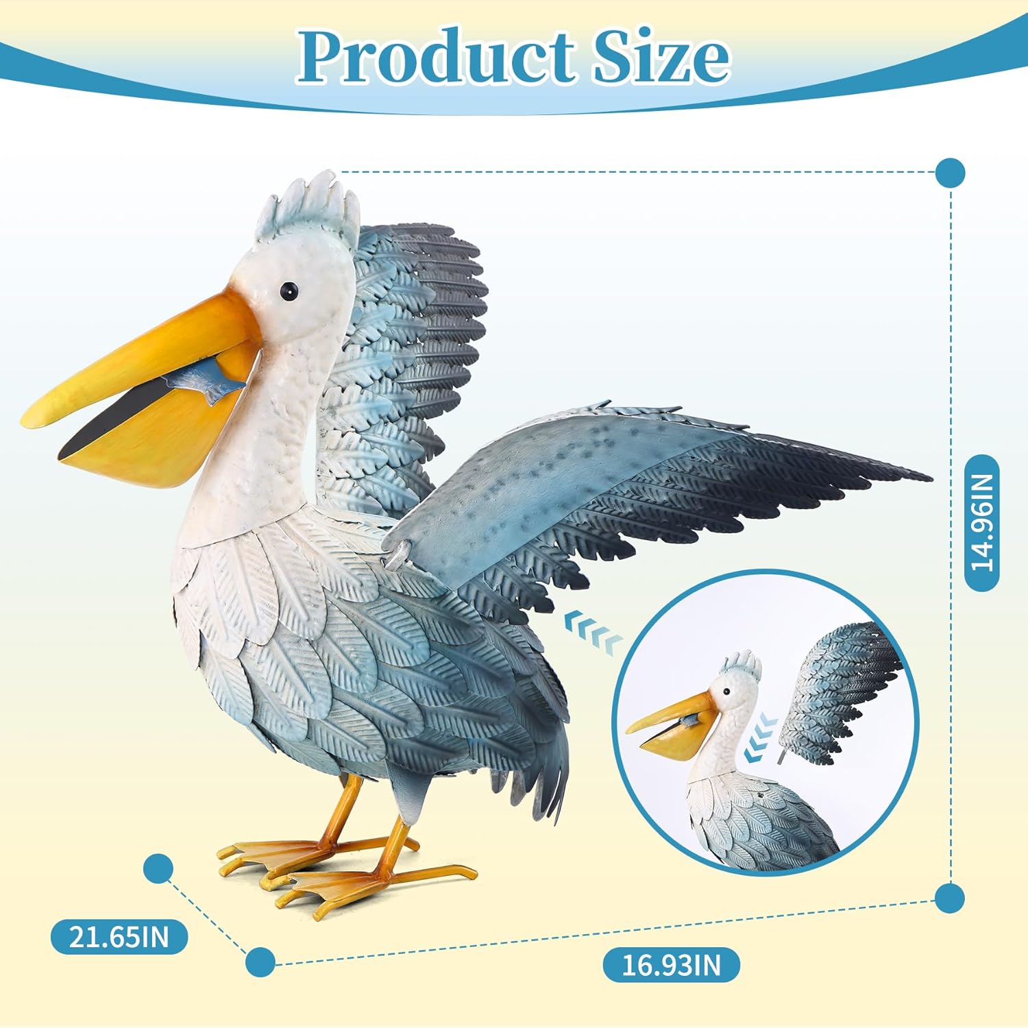 - Pelican garden decor in large size (16.93"D x 21.65"W x 14.96"H)with exquisite wings details.Each feathers are weld piece by piece.