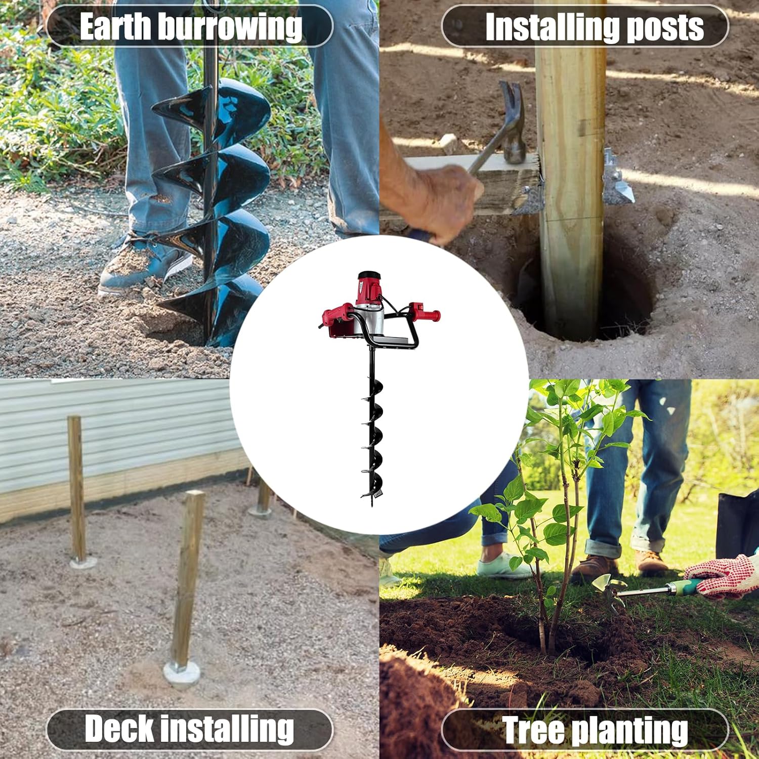 - 【MULTIPLE USES】: The electric earth digger can be widely utilized in digging projects to meet different hole requirements, such as mailbox post digging, fence and deck installing, tree planting, and many other applications.Tip:Not suitable for rocky soils