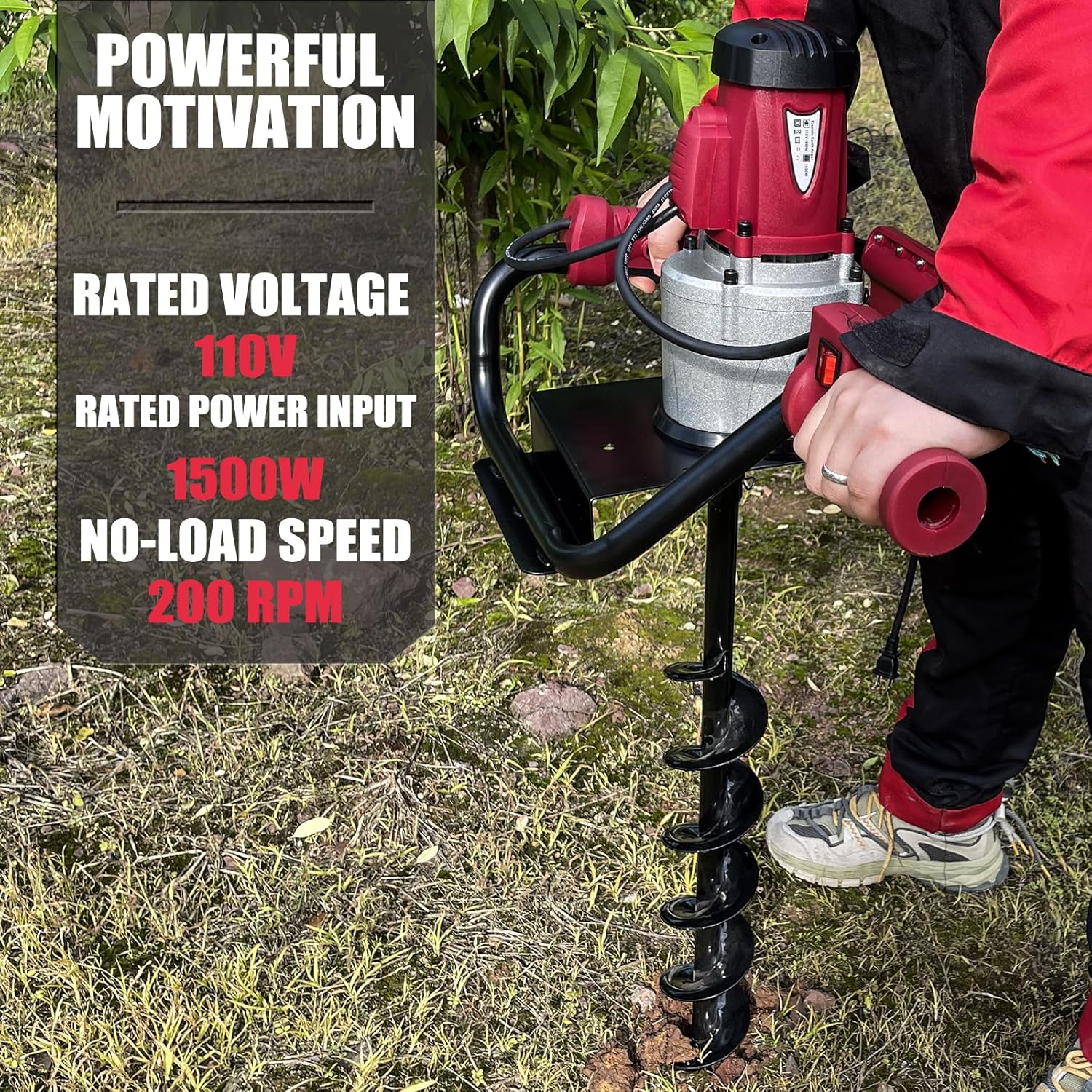 - 【1500W MOTOR】: Rotational Speed: 200 rpm; Torque: 90 ft-lb. Electric post hole digger enables multiple diggings in a quick succession manner. You can find it energy and labor-saving during application.