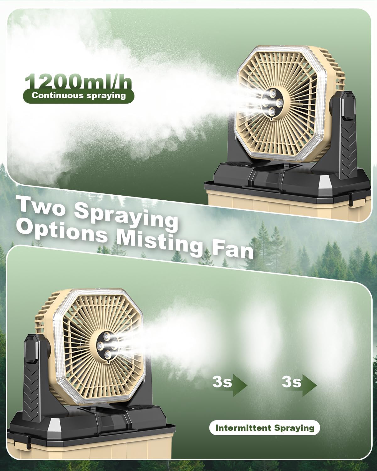 Coolice Camping Bucket Misting Fan 8L Water Tank, 24000mAh Outdoor Misting Fan with 2 Spray Modes & 3 Speeds, 3-speed LED lights Floor Cooling Fans, Portable Camping Fans for Patio, Garden, Worksite