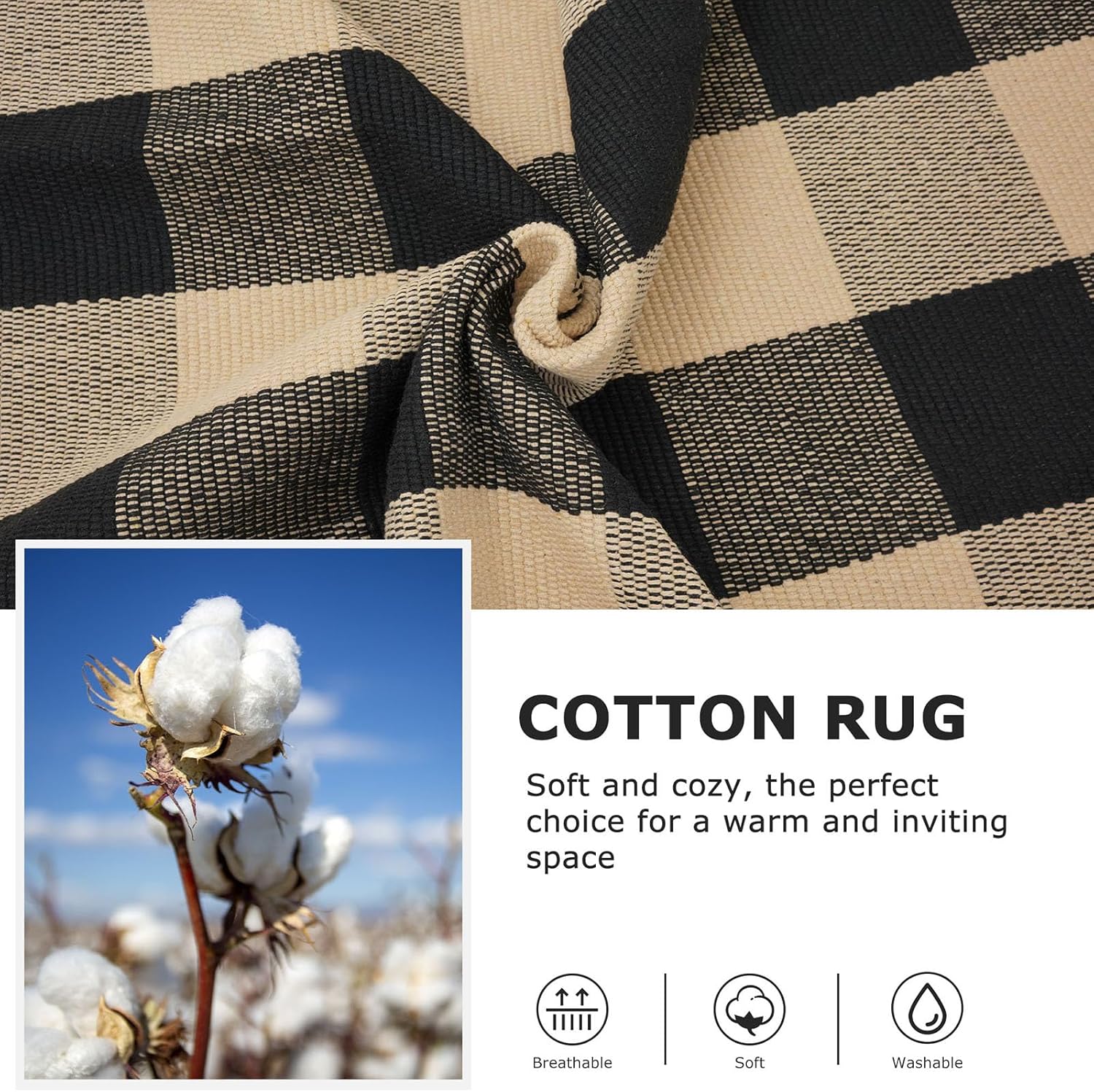 - Soft Cotton Blend Material: This buffalo plaid rug is made from 0.23 inches thick cotton blend fabric, offering excellent water absorption, breathability, and durability
