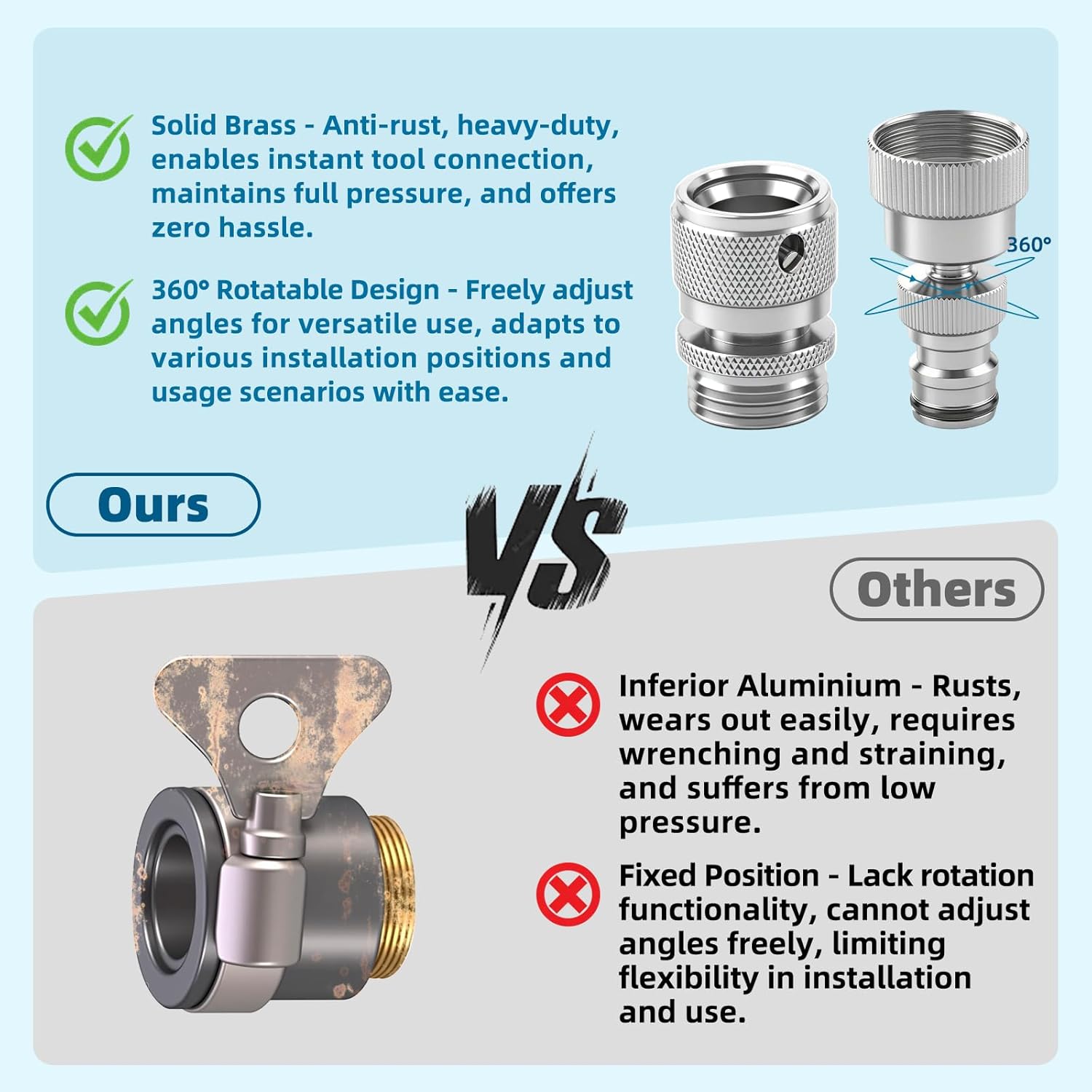 - Premium Solid Brass Construction: Crafted from high-quality solid brass, these quick connectors offer exceptional durability, corrosion resistance, and long-lasting performance. They outlast plastic alternatives, ensuring reliable use for years to come