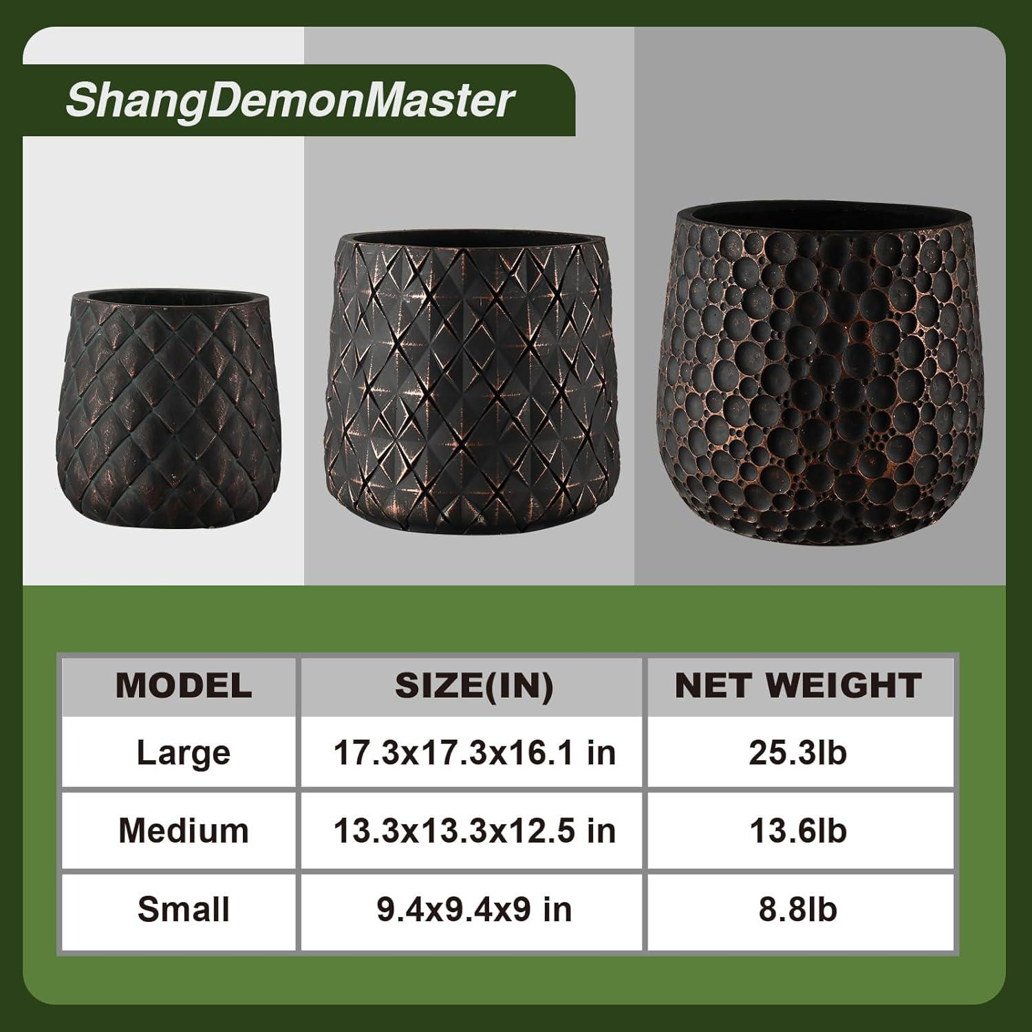 - Set of 3 Sizes: Includes three planters in small (9"x9"x8"), medium (13"x13"x12"), and large (18"x18"x16") sizes, allowing for a layered or staggered display of plants.