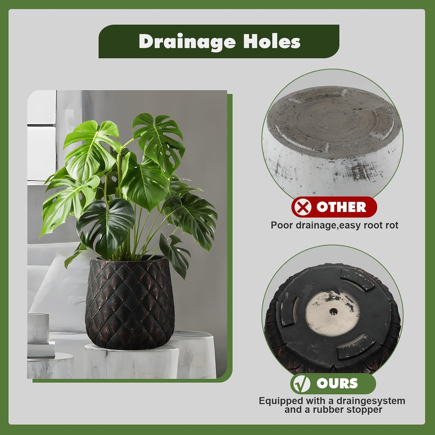 - Drainage System: Each planter is equipped with a drainage hole and a removable rubber plug to ensure proper water drainage and soil health.