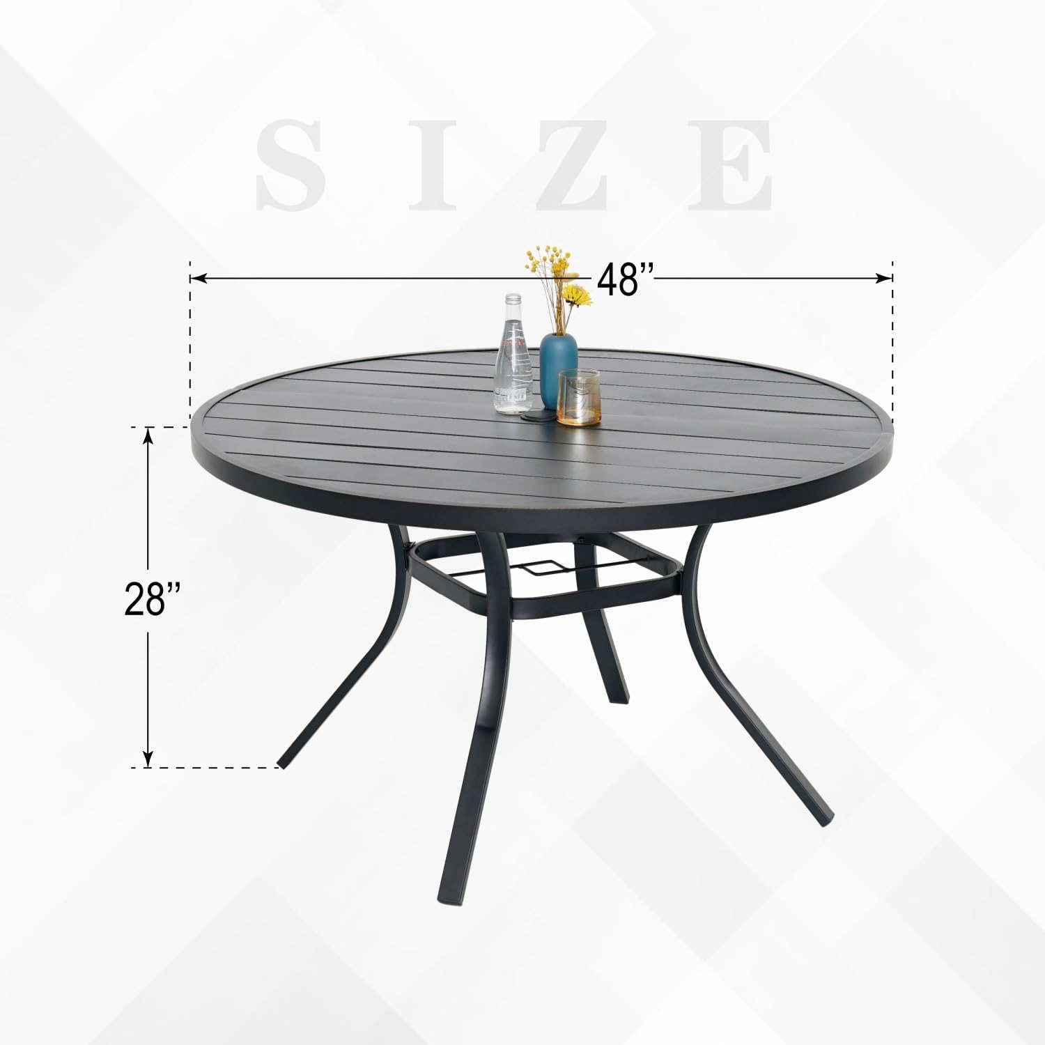 - SPACIOUS SURFACE: 48-inch round tabletop provides ample dining space, with slatted design that prevents water pooling