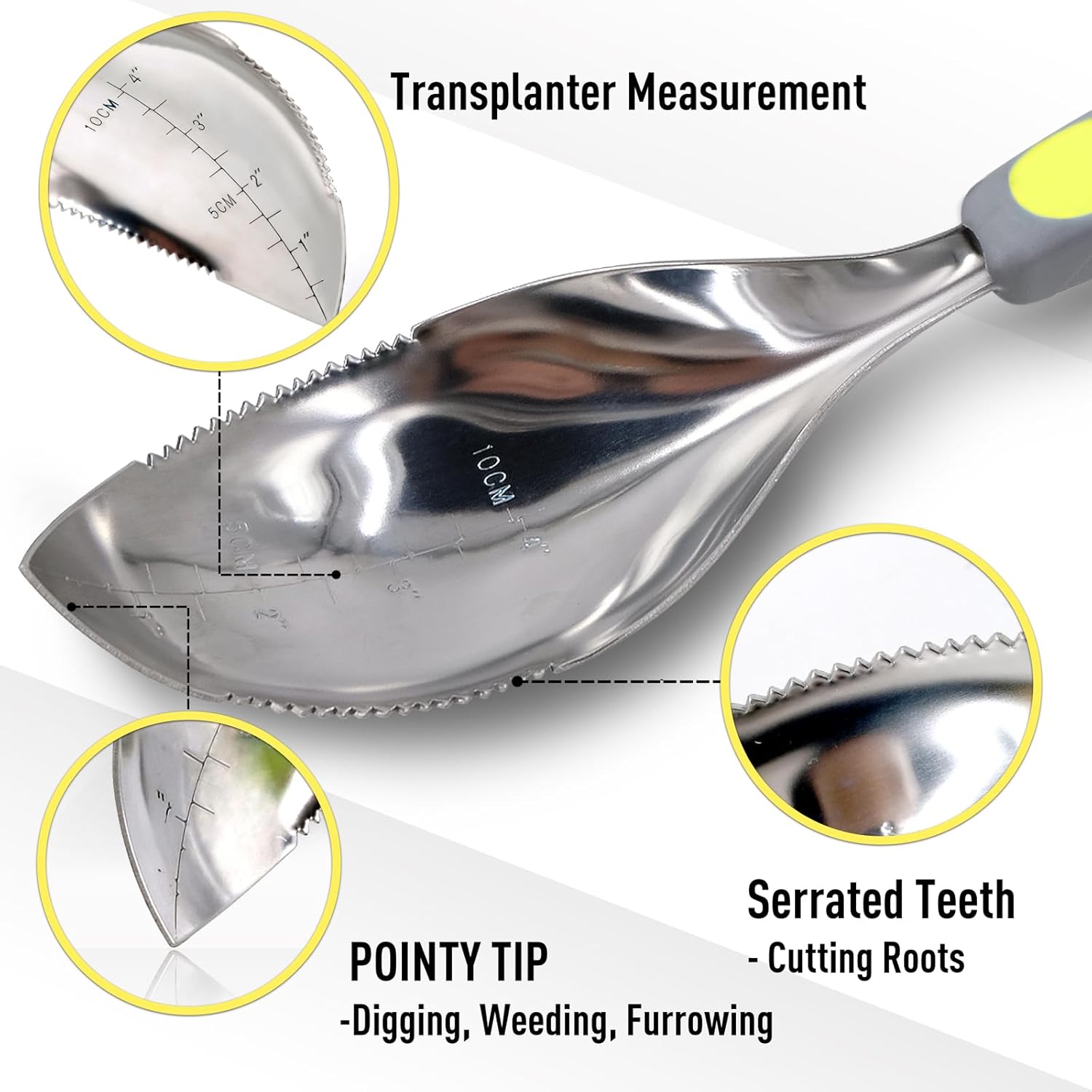 - Heavy-Duty Stainless Steel Blade β The hand shovel is made with rust-proof, high-quality stainless steel, this durable hand gardening trowel stays sharp and withstands tough soil, roots, and outdoor conditions