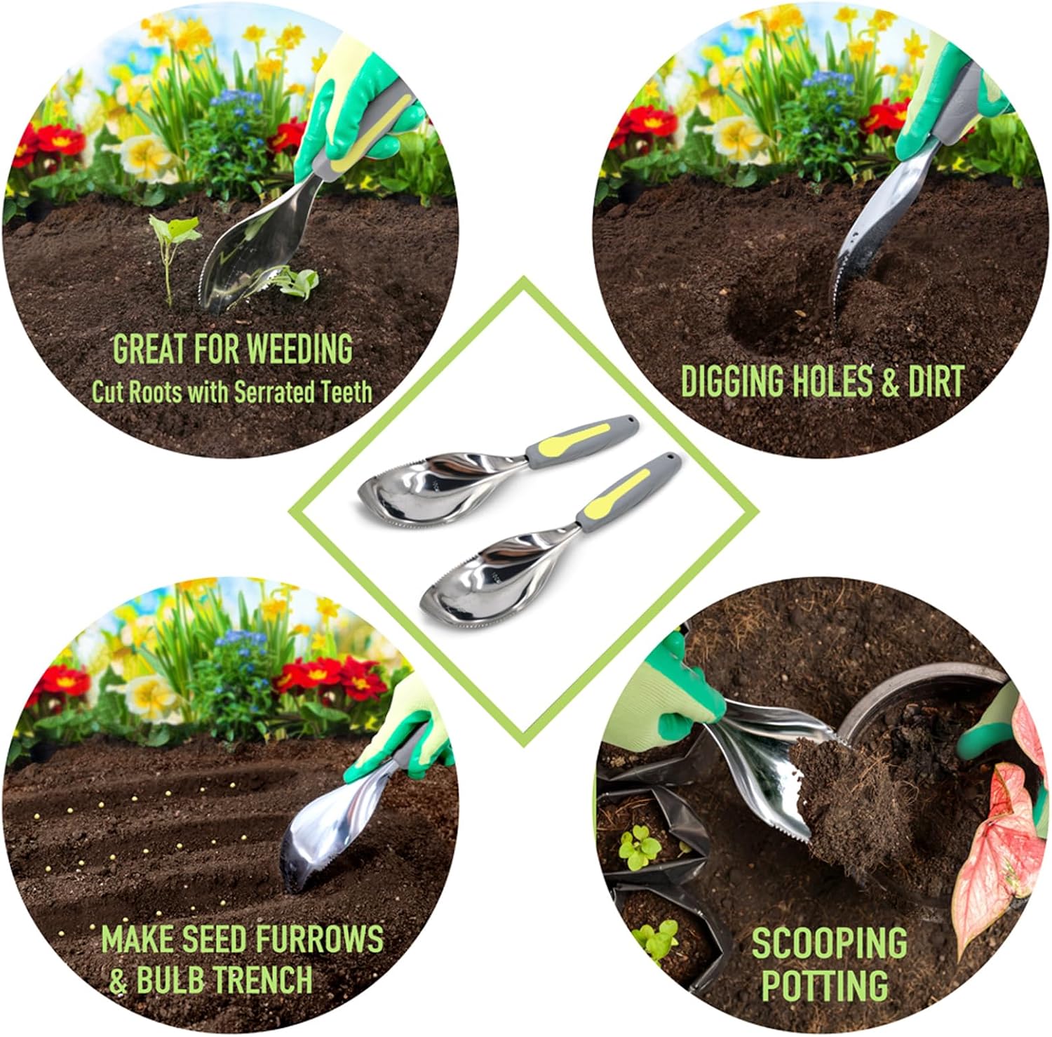 - Multi-Purpose Trowel for Digging & Weeding β The garden trowel is perfect for transplanting seedlings, loosening soil, removing weeds, and aerating garden beds, making it ideal for flower beds, vegetable gardens, and potted plants. This all-in-one garden tool can perform as cultivater, soil scoop,trowel, weeder, bulb digger