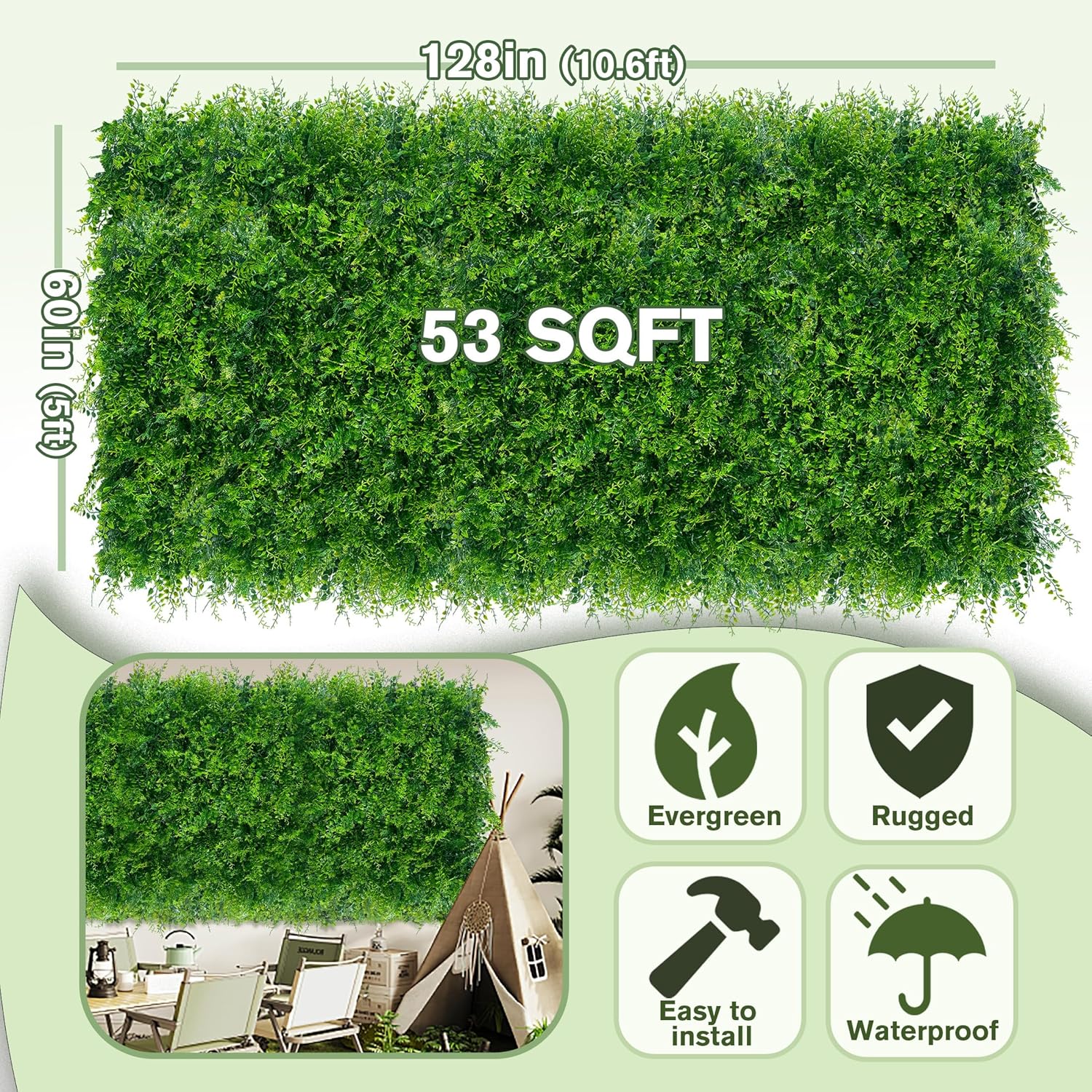 Greenery Faux Grass Wall Backdrop 60"x128" (53.5 SQFT) UV-Anti Artificial Green Boxwood Panel for Patio Balcony Privacy & Ivy Fence Covering Privacy, Garden, Backyard Wall Backdrop Decor