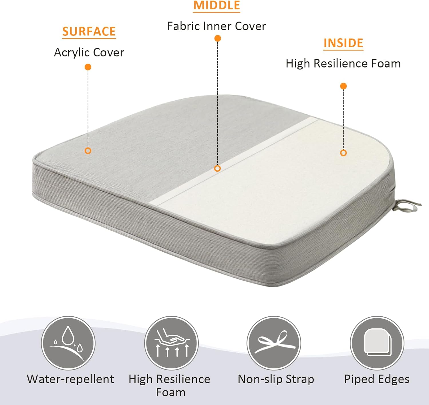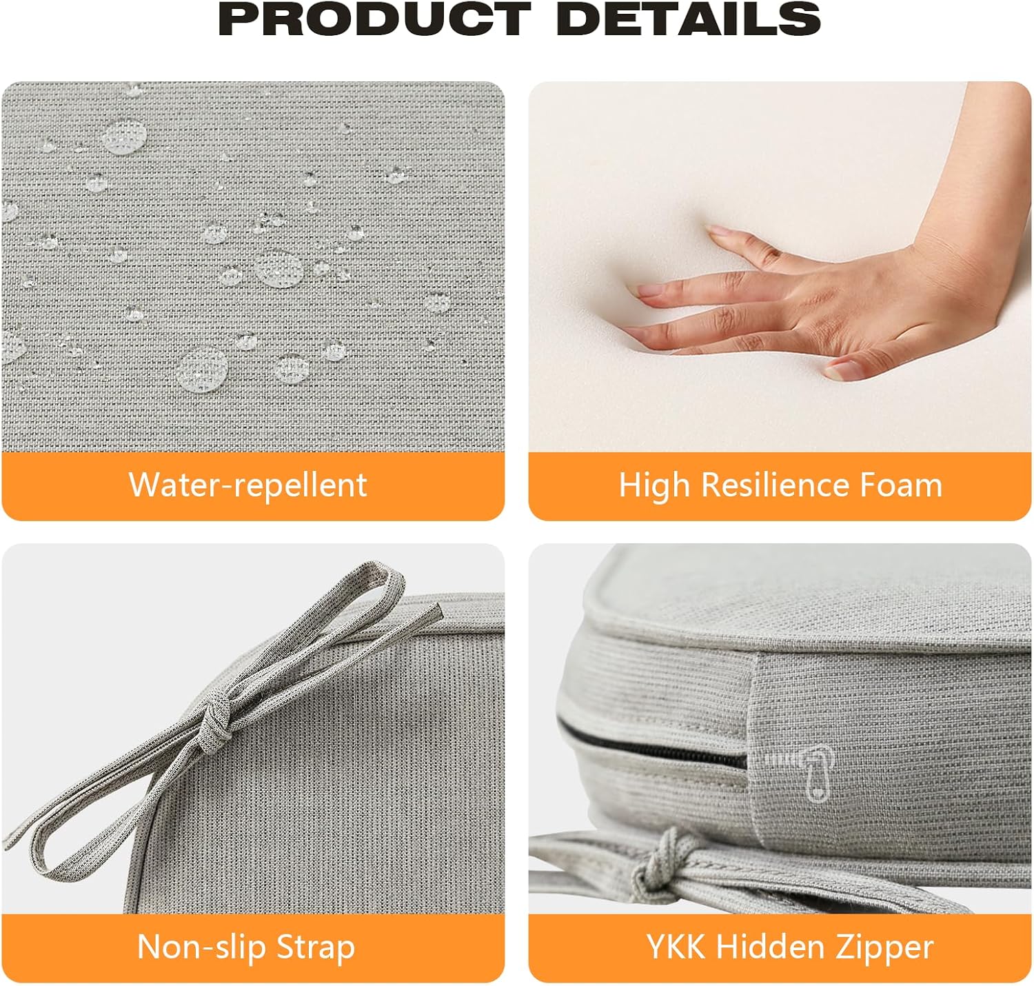 Sunbrella Round Corner Seat Cushions, 17" x 16" x 2", Set of 4, Indoor Outdoor Water Repellent Universal Chair Pads with Ties for Patio Furniture, Garden Dining Chairs, Specrtum Pebble