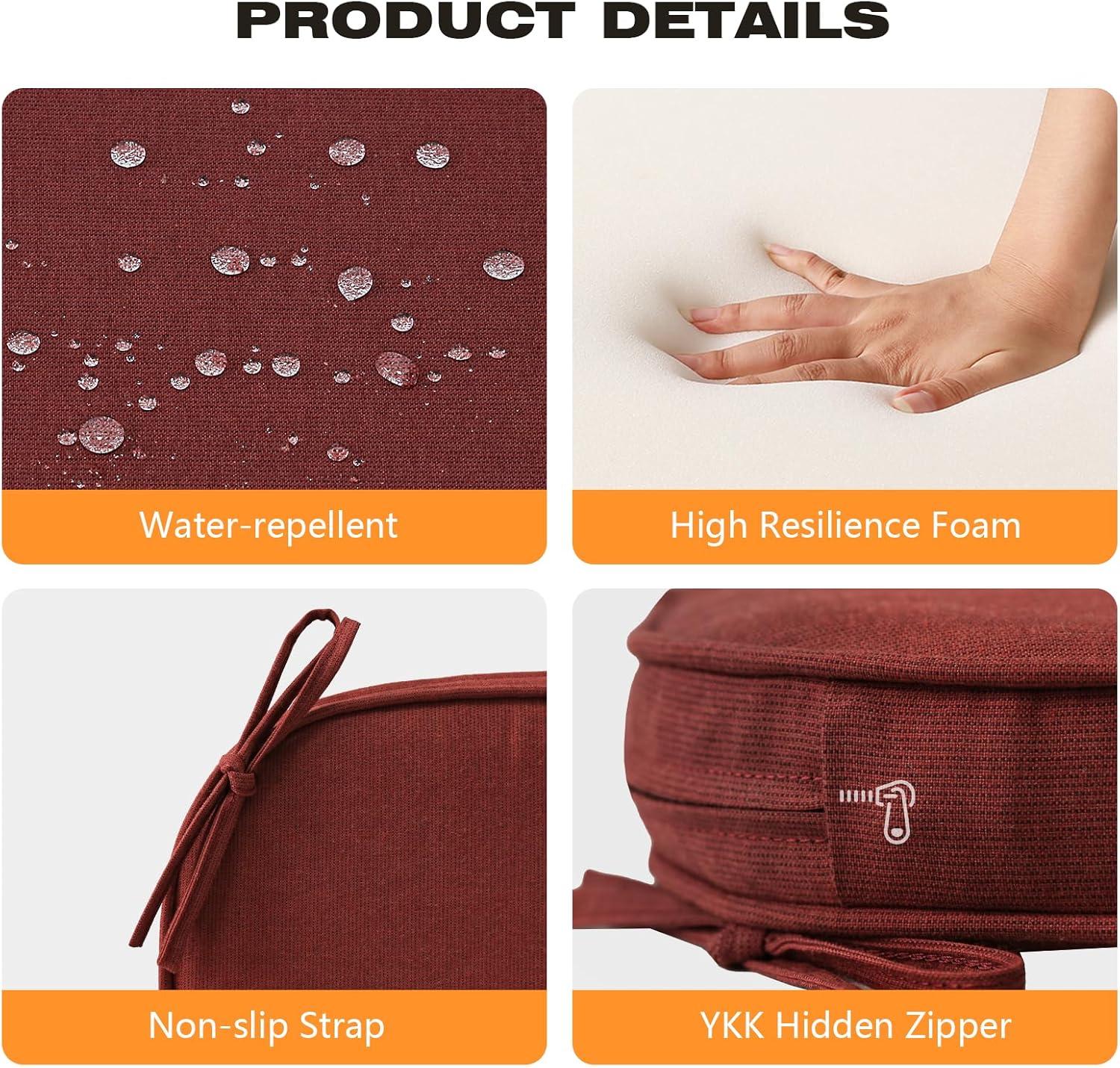 Sunbrella Round Corner Seat Cushions, 17" x 16" x 2", Set of 4, Indoor Outdoor Water Repellent Universal Chair Pads with Ties for Patio Furniture, Garden Dining Chairs, Spectrum Brick